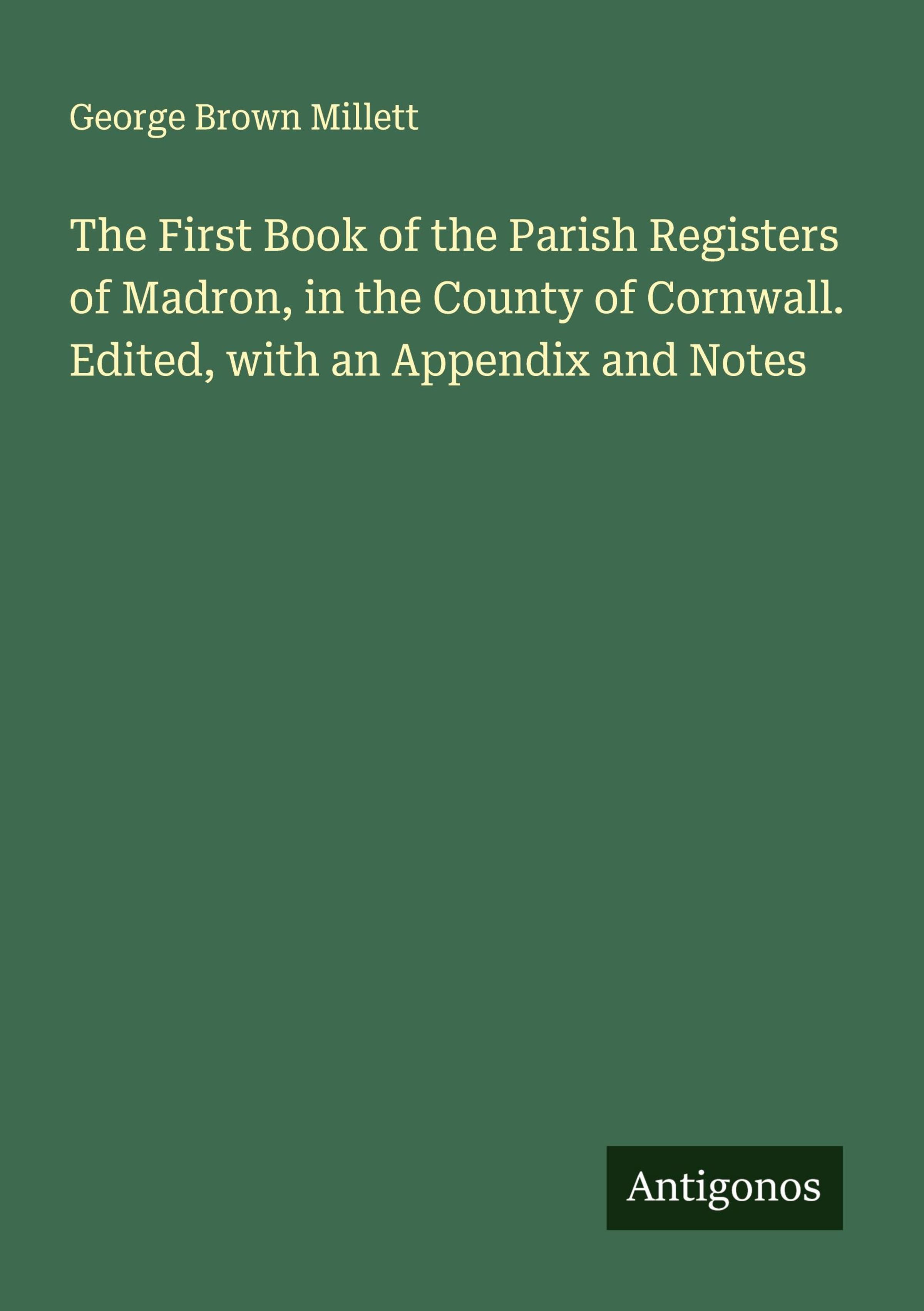 George Brown Millett: The First Book of the Parish Registers of Madron, in the County of Cornwall. Edited, with..., Kartoniert / Broschiert