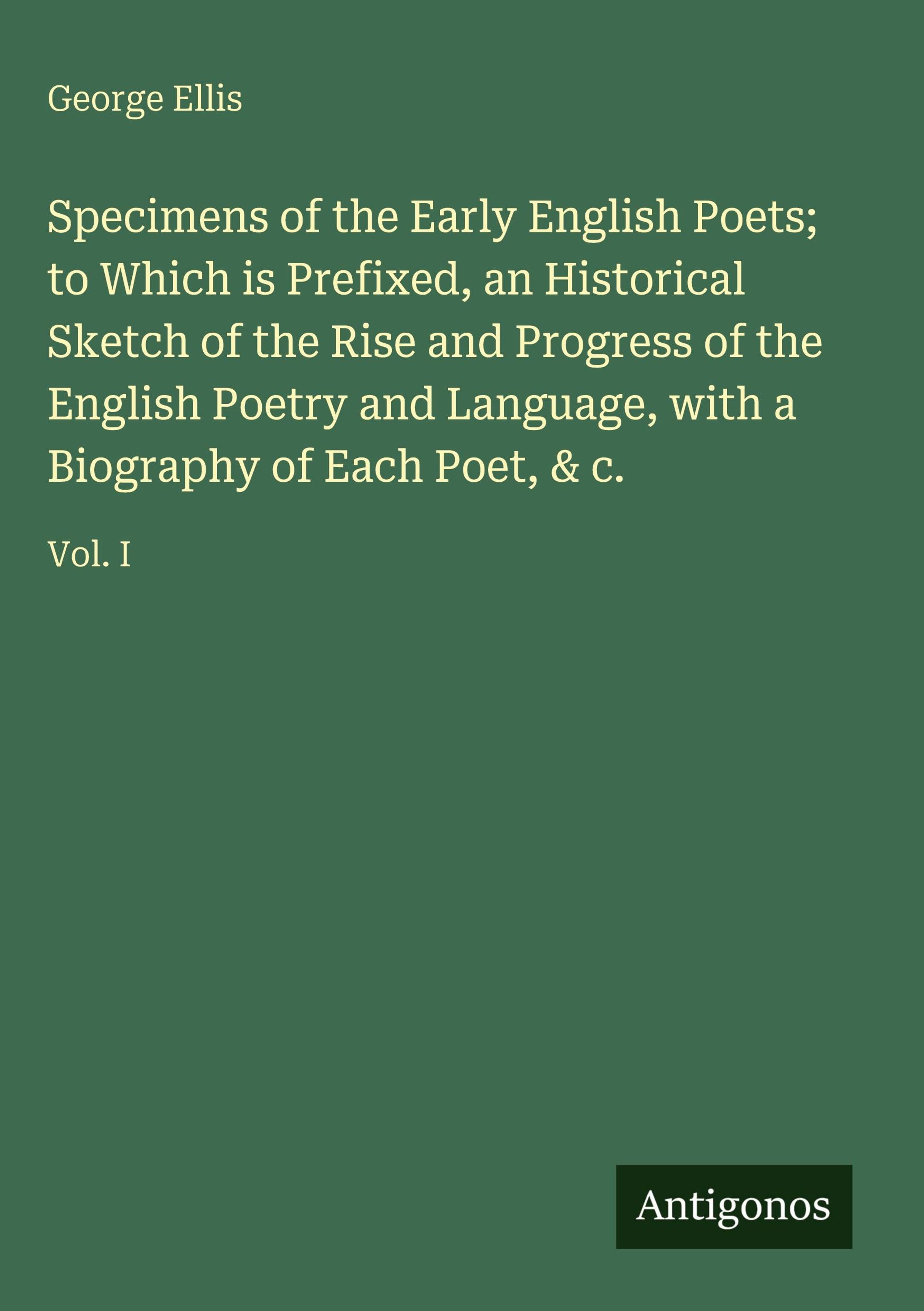 Specimens of the Early English Poets; to Which is Prefixed, an Historical Sketch of the Rise and Progress of the English Poetry and Language, with a Biography of Each Poet, & c.