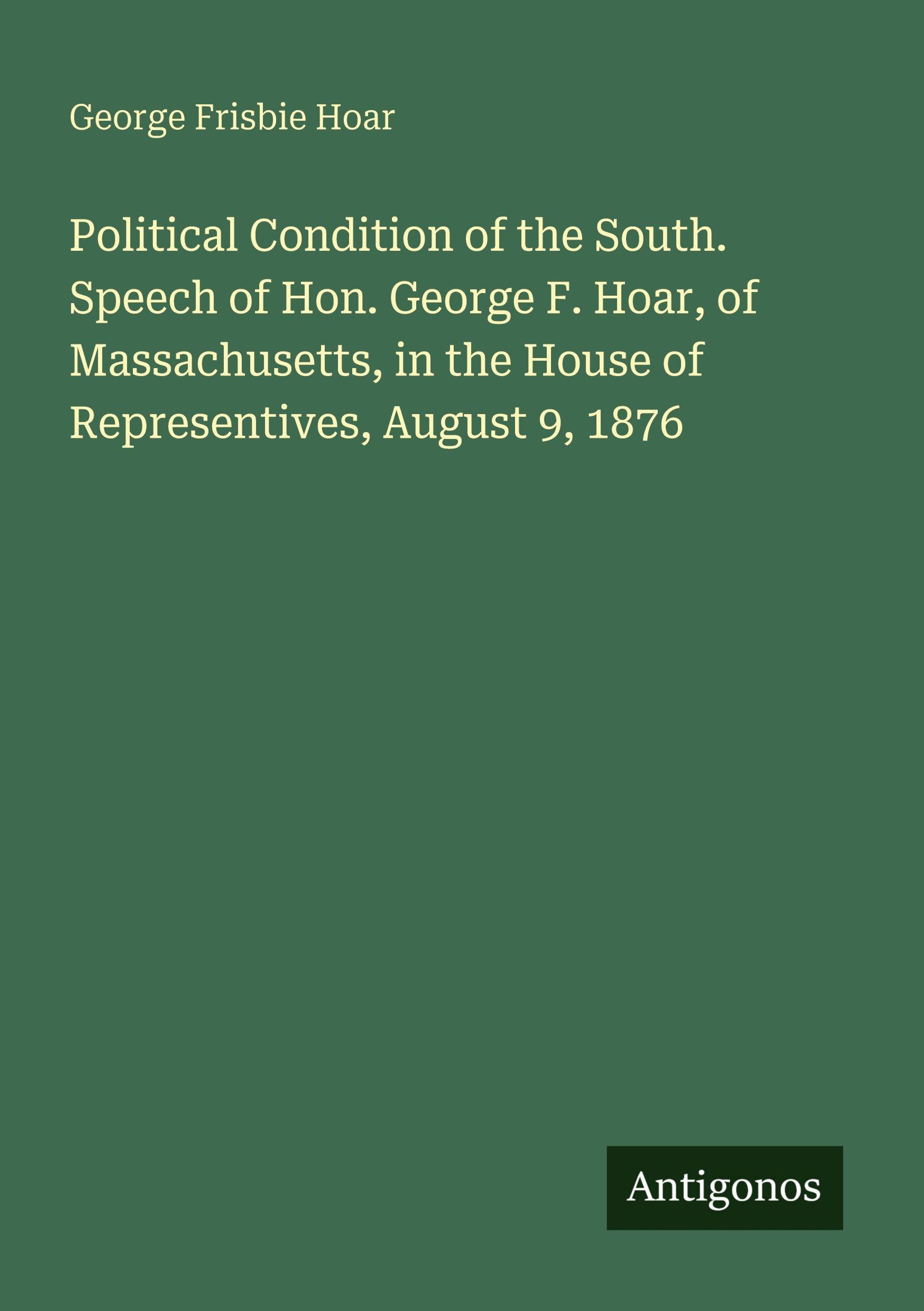 Political Condition of the South. Speech of Hon. George F. Hoar, of Massachusetts, in the House of Representives, August 9, 1876