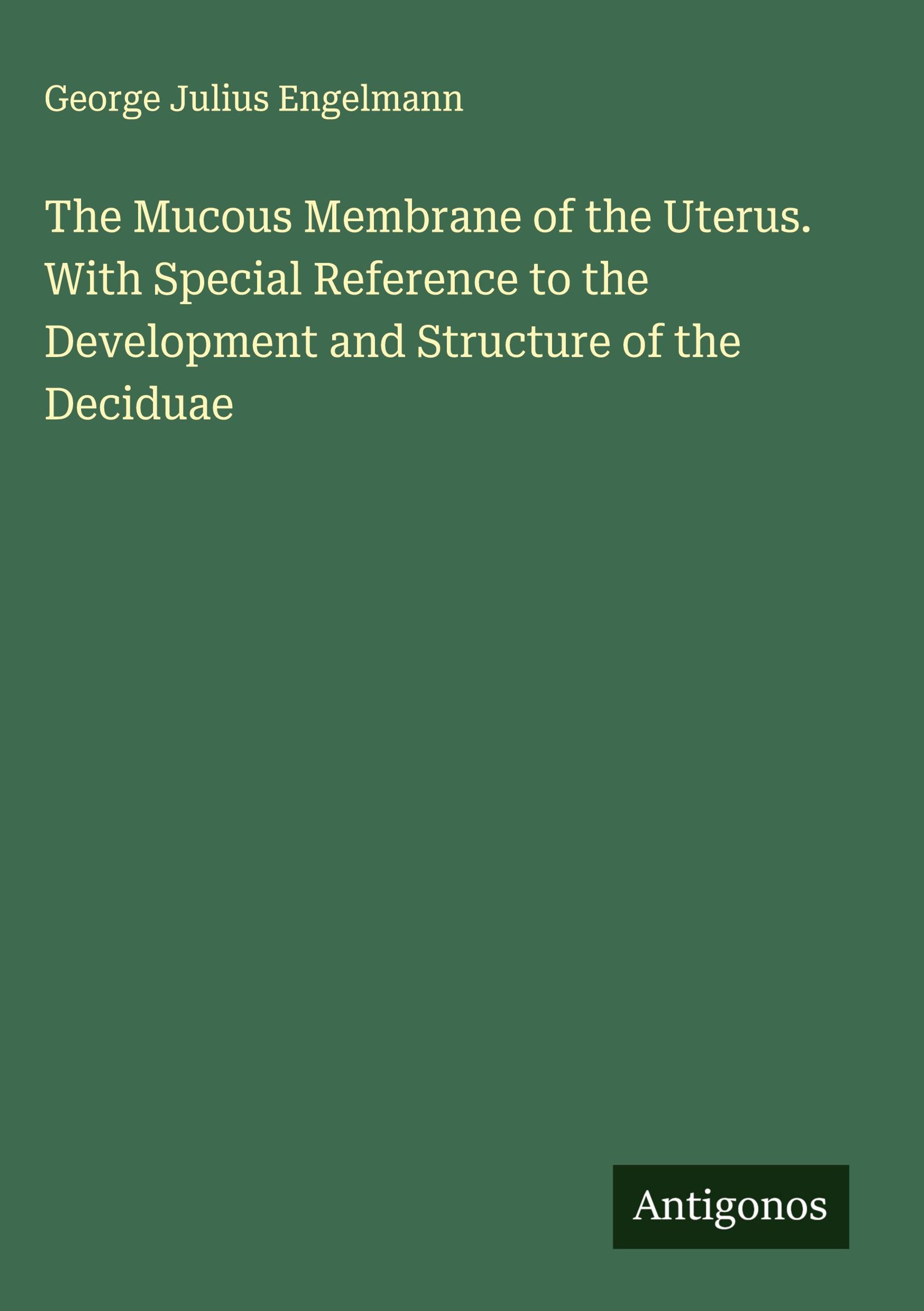George Julius Engelmann: The Mucous Membrane of the Uterus. With Special Reference to the Development and..., Gebunden
