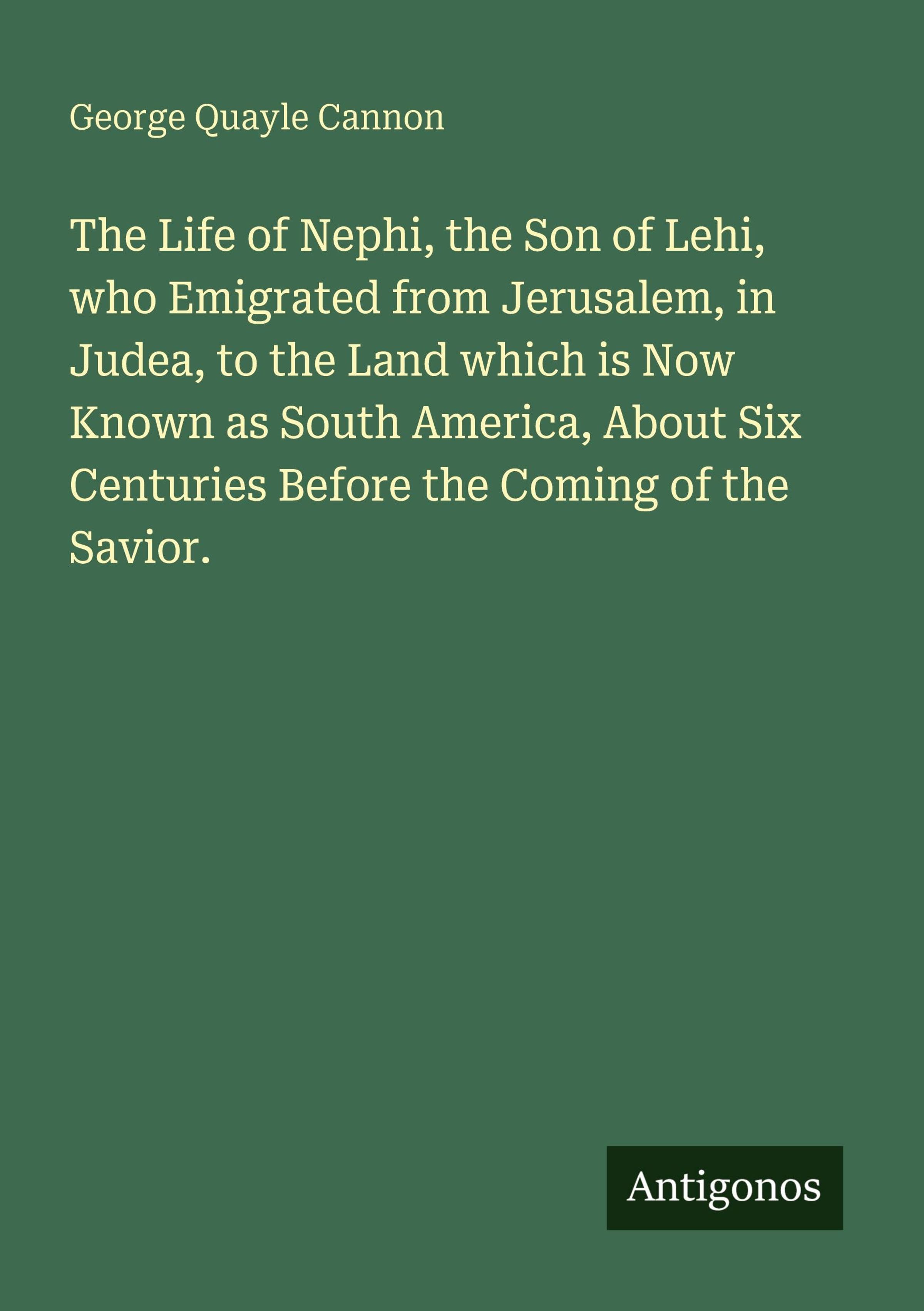 The Life of Nephi, the Son of Lehi, who Emigrated from Jerusalem, in Judea, to the Land which is Now Known as South America, About Six Centuries Before the Coming of the Savior.