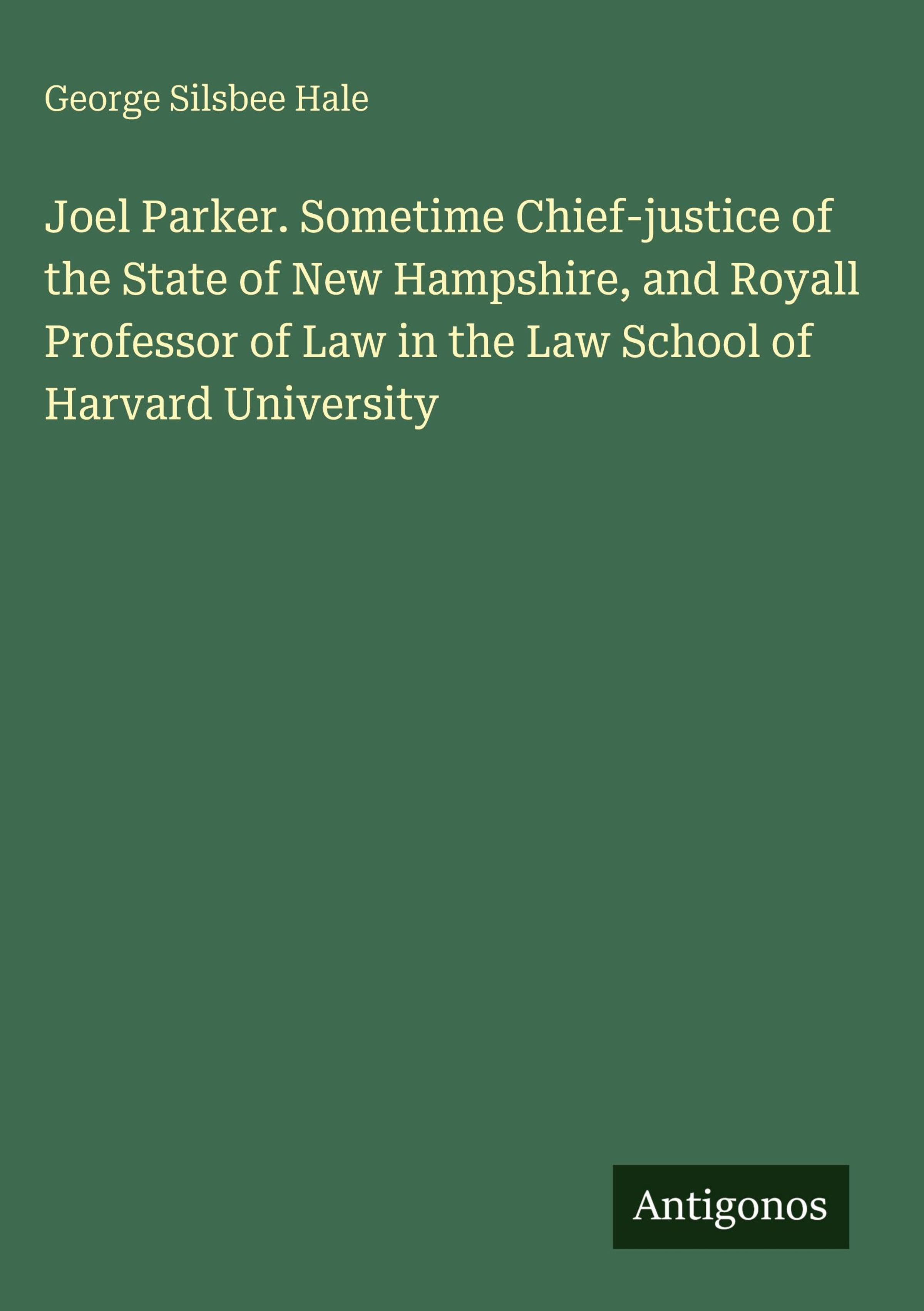 George Silsbee Hale: Joel Parker. Sometime Chief-justice of the State of New Hampshire, and Royall Professor of..., Gebunden