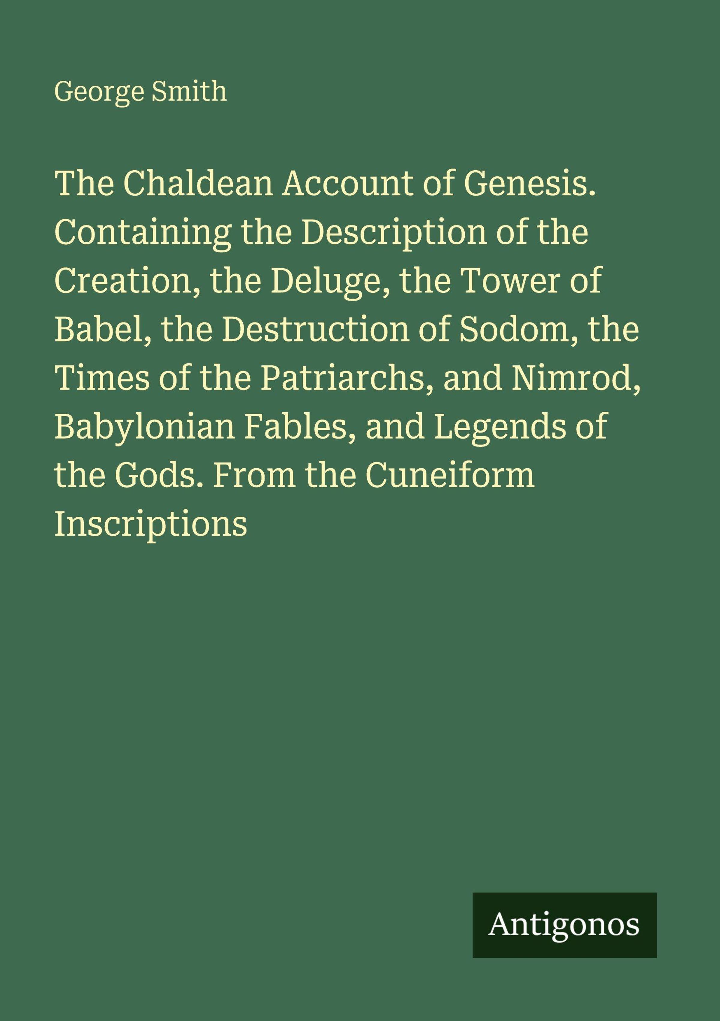 The Chaldean Account of Genesis. Containing the Description of the Creation, the Deluge, the Tower of Babel, the Destruction of Sodom, the Times of the Patriarchs, and Nimrod, Babylonian Fables, and Legends of the Gods. From the Cuneiform Inscriptions