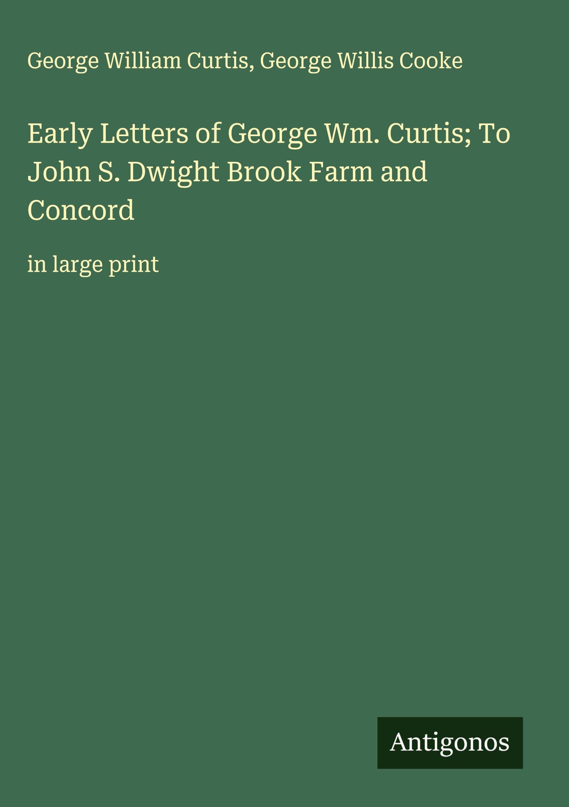 Early Letters of George Wm. Curtis; To John S. Dwight Brook Farm and Concord