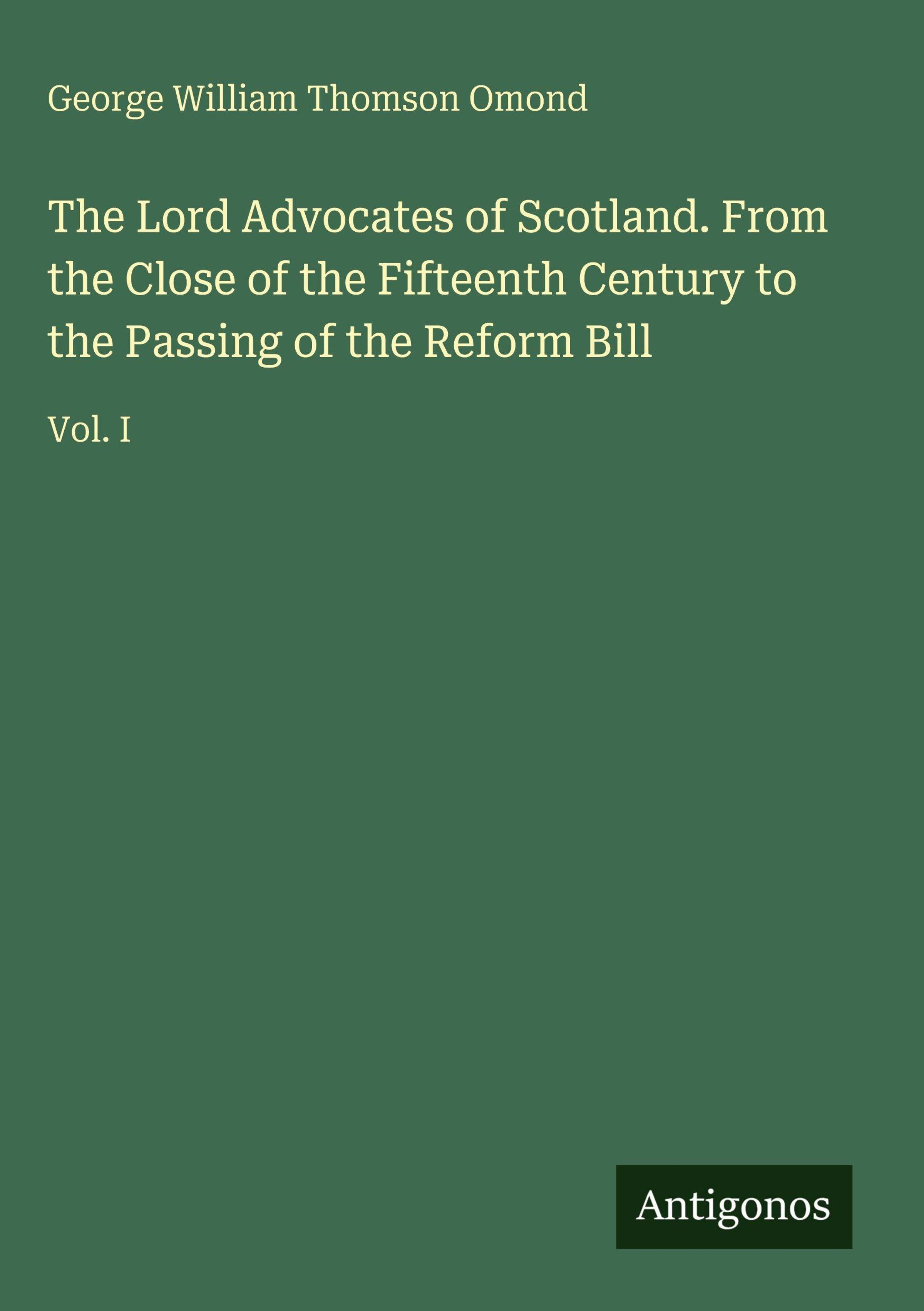 George William Thomson Omond: The Lord Advocates of Scotland. From the Close of the Fifteenth Century to the..., Gebunden