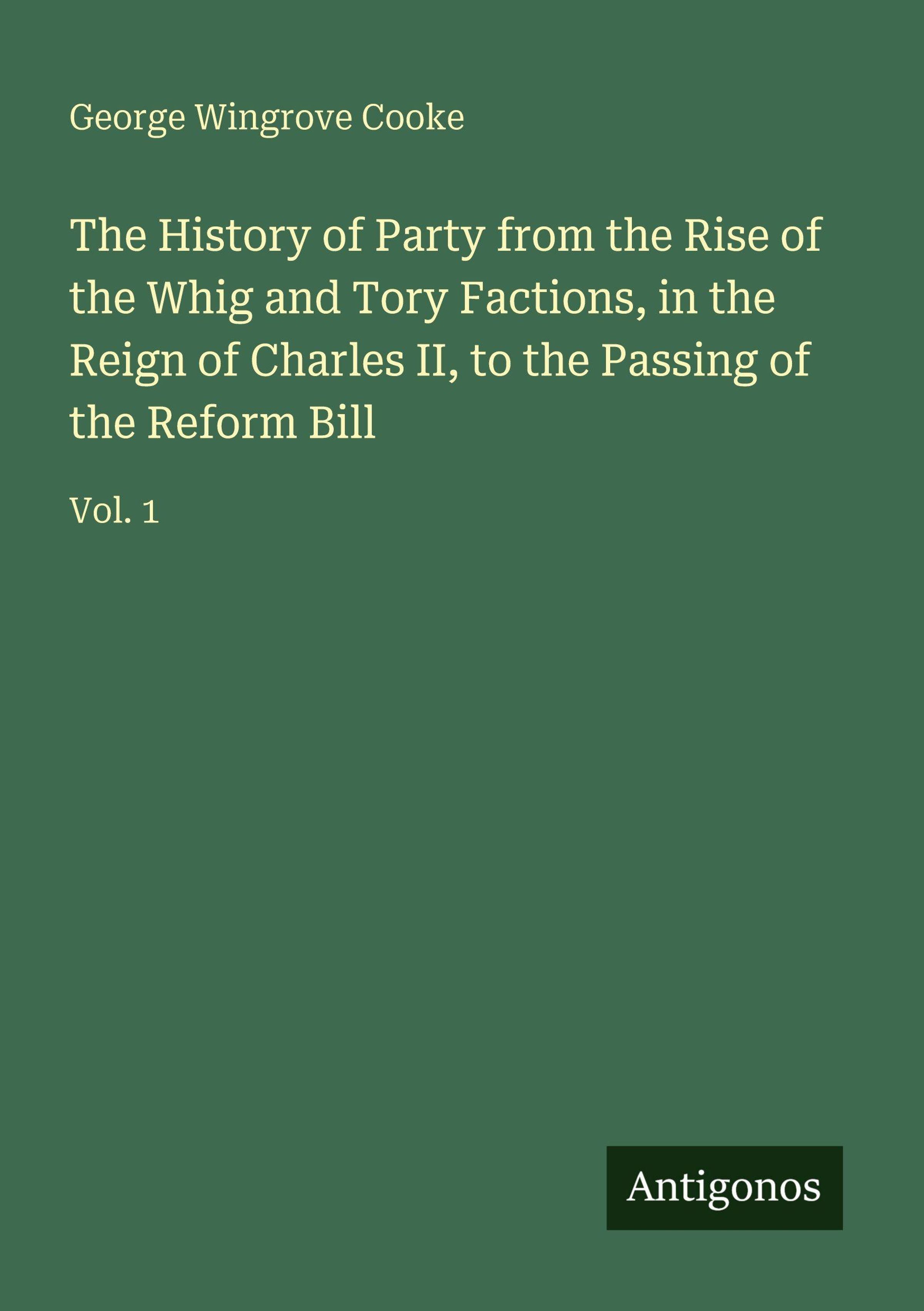 The History of Party from the Rise of the Whig and Tory Factions, in the Reign of Charles II, to the Passing of the Reform Bill