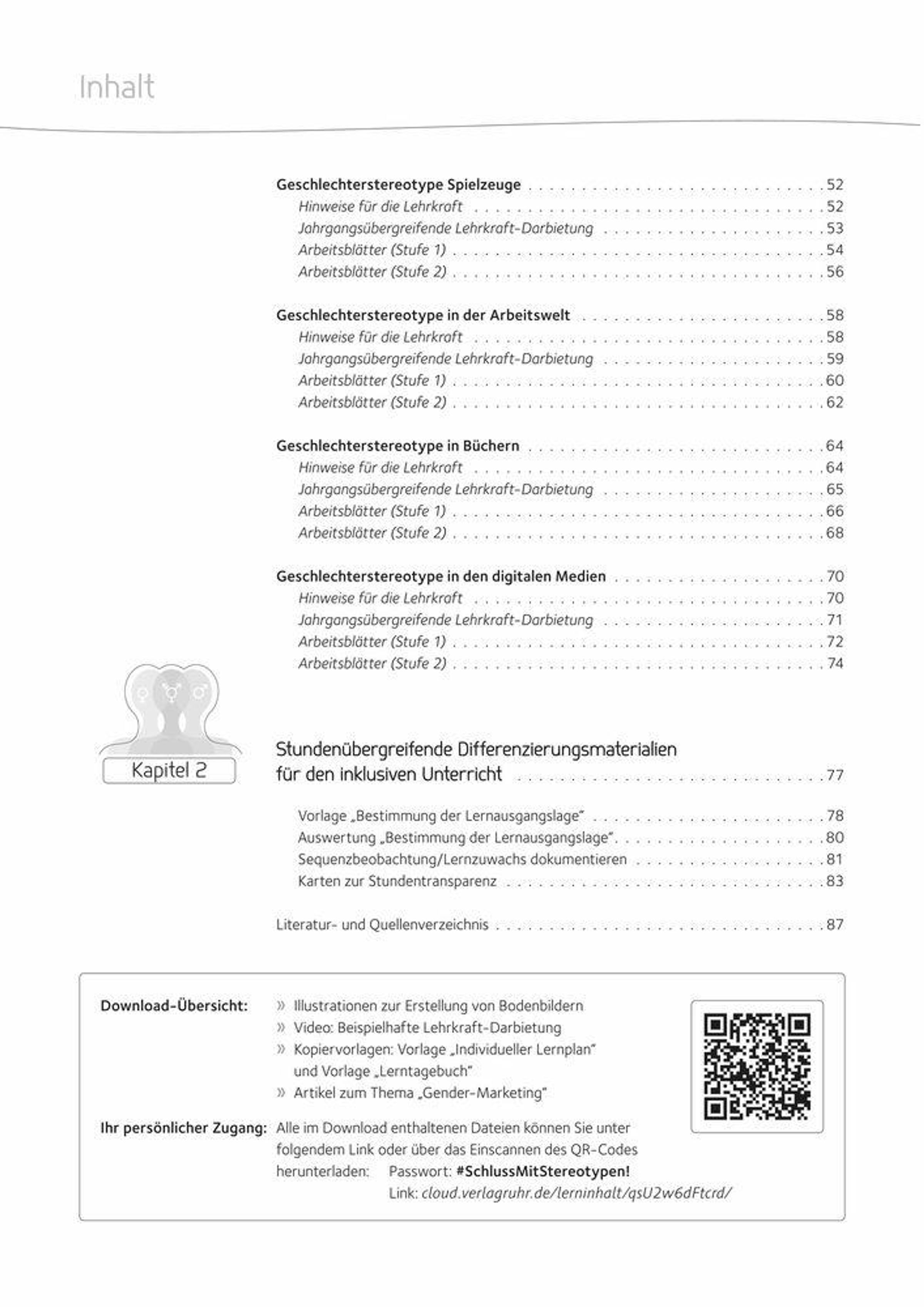 Im Download finden Sie Differenzierungsmaterial für den inklusiven Unterricht sowie farbige Illustrationen für die Erstellung von Bodenbildern. Ob für eine Vertretungsstunde oder als komplette Unterrichtsreihe - mit diesem flexibel einsetzbaren und leicht zugänglichem Material gestalten Sie einen gendersensiblen Unterricht , der Vorurteile abbaut und Vielfalt fördert .
