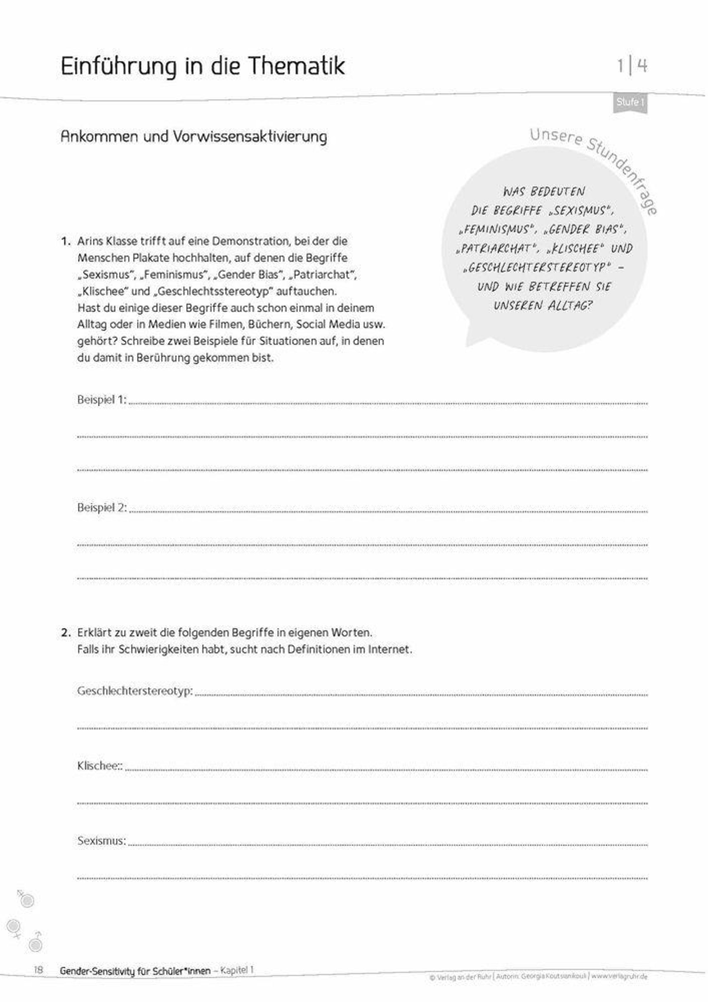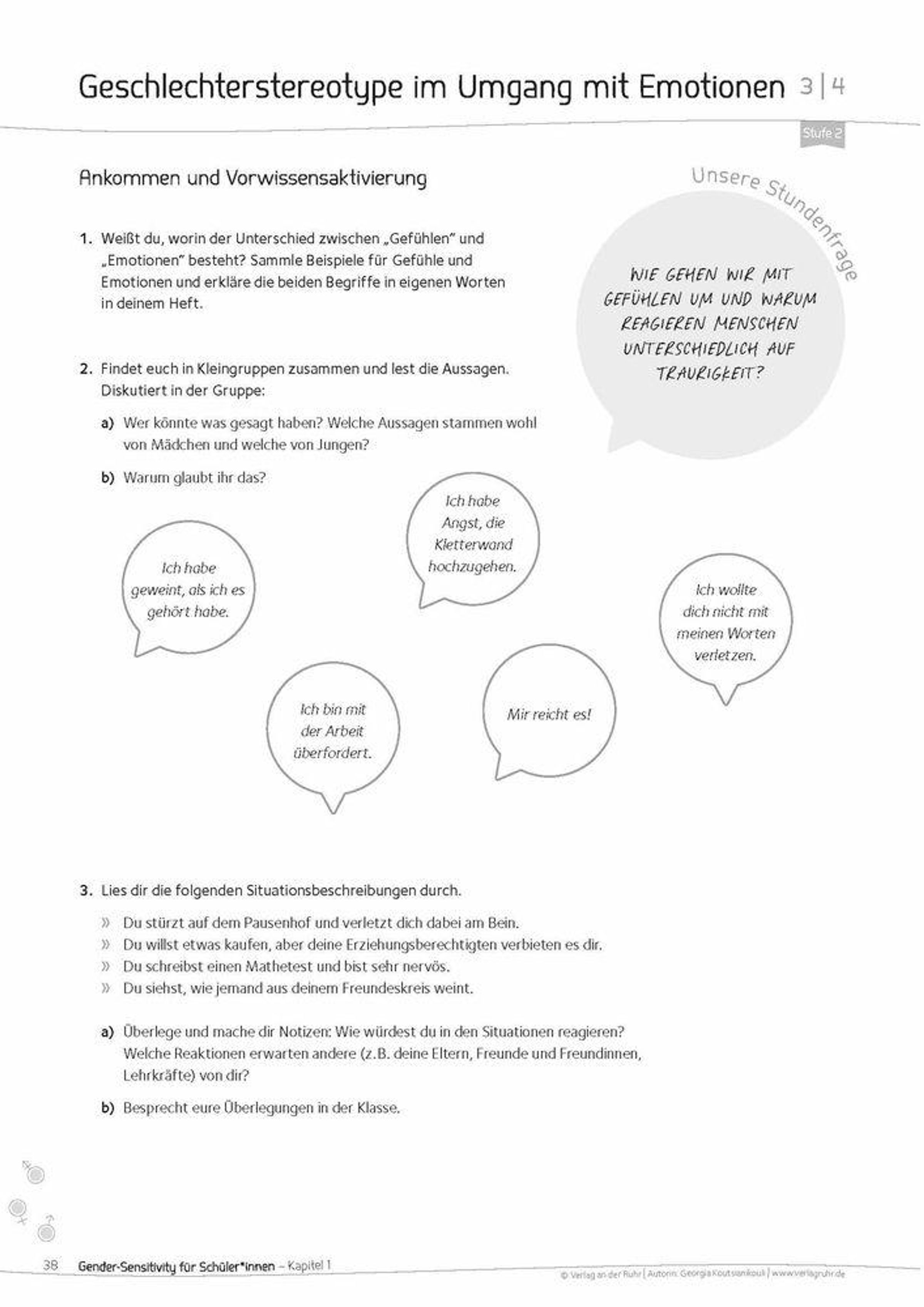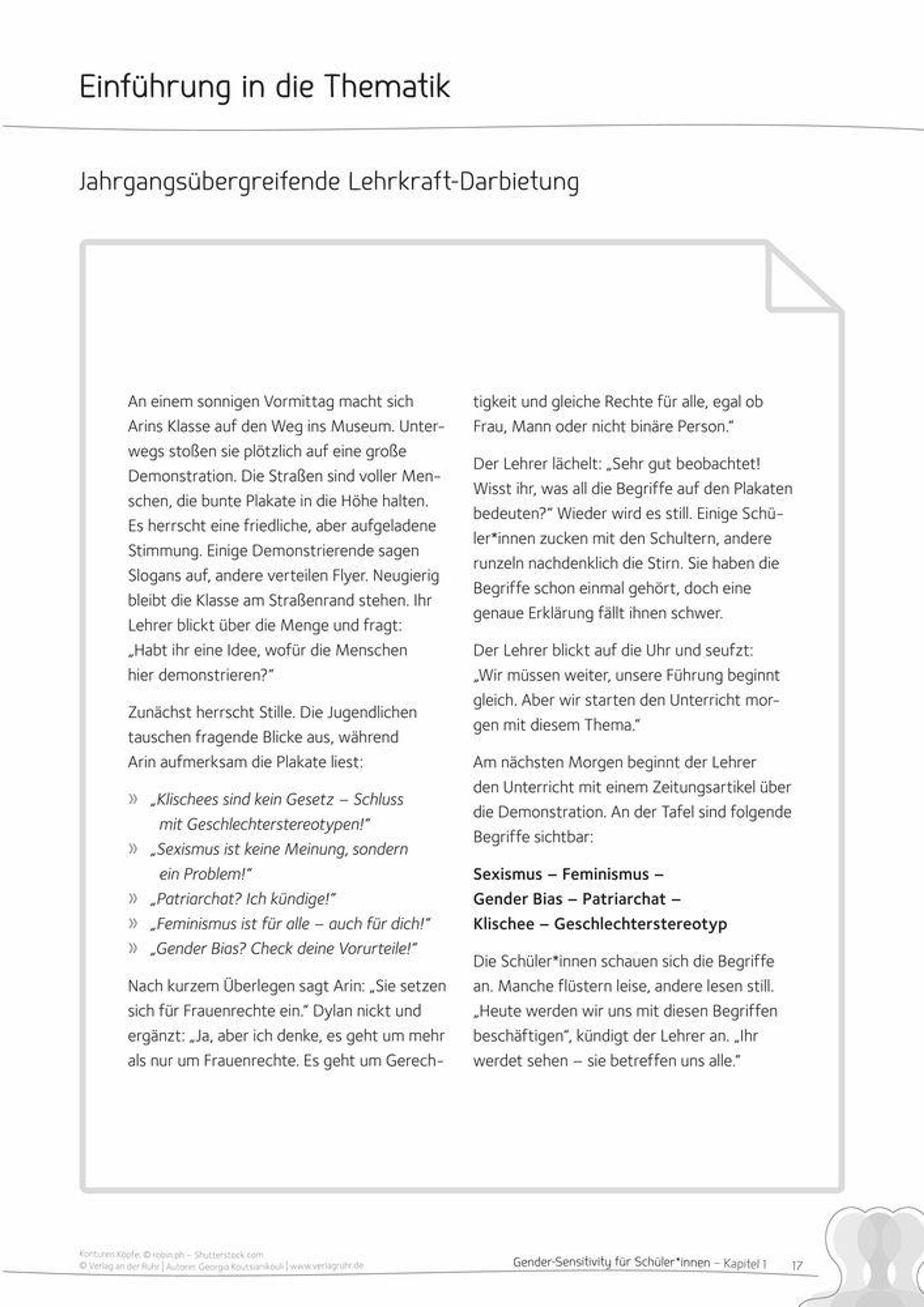 Wie prägen Geschlechterstereotype unser Denken und Handeln? Dieses einfache Unterrichtsmaterial unterstützt Ihre Schüler und Schülerinnen bei der Reflexion von Geschlechterrollen und sensibilisiert sie für den Einfluss von Geschlechterklischees . Das Heft enthält niedrigschwellige, 2-fach differenzierte Kopiervorlagen für die Klassen 5-8. Anhand von Geschichten werden u. a. die folgenden Themen behandelt: