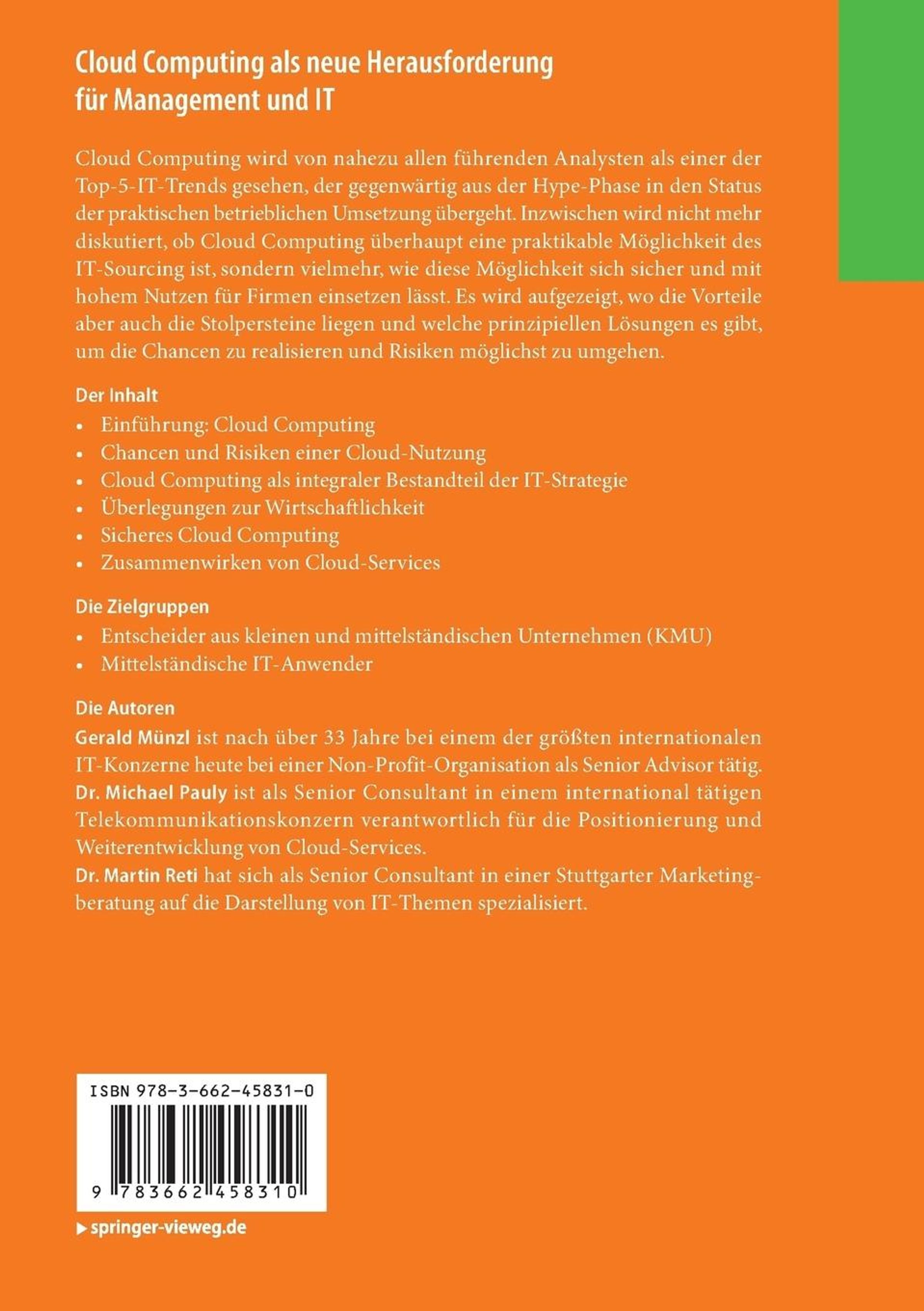 Cloud Computing wird von nahezu allen führenden Analysten als einer der Top-5-IT-Trends gesehen, der gegenwärtig aus der Hype-Phase in den Status der praktischen betrieblichen Umsetzung übergeht. Inzwischen wird nicht mehr diskutiert, ob Cloud Computing überhaupt eine praktikable Möglichkeit des IT-Sourcing ist, sondern vielmehr, wie diese Möglichkeit sich sicher und mit hohem Nutzen für Firmen einsetzen lässt. Es wird aufgezeigt, wo die Vorteile aber auch die Stolpersteine liegen und welche prinzipiellen Lösungen es gibt, um die Chancen zu realisieren und Risiken möglichst zu umgehen.