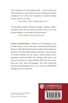 Gerd Gigerenzer ist der in Wissenschaftskreisen derzeit meistzitierte deutsche Psychologe. Nach Lehrtätigkeiten in Konstanz, Salzburg und Chicago ist er heute Direktor am Max-Planck-Institut für Bildungsforschung in Berlin, wo er den Bereich Adaptives Verhalten und Kognition leitet. Dort erforscht er u. a. Risikoverhalten und -kommunikation, die Natur sozialer Intelligenz und schließlich, wie Menschen mit begrenzter Zeit und begrenztem Wissen Entscheidungen treffen. Seine Forschungsarbeit ist interdisziplinär und berührt die Fachrichtungen Ökonomie, Informatik, Psychologie, Mathematik, Anthropologie und Biologie.§Er hat zahlreiche internationale Auszeichnungen erhalten, so auch den Preis der renommierten American Association for the Advancement of Science (AAAS)
