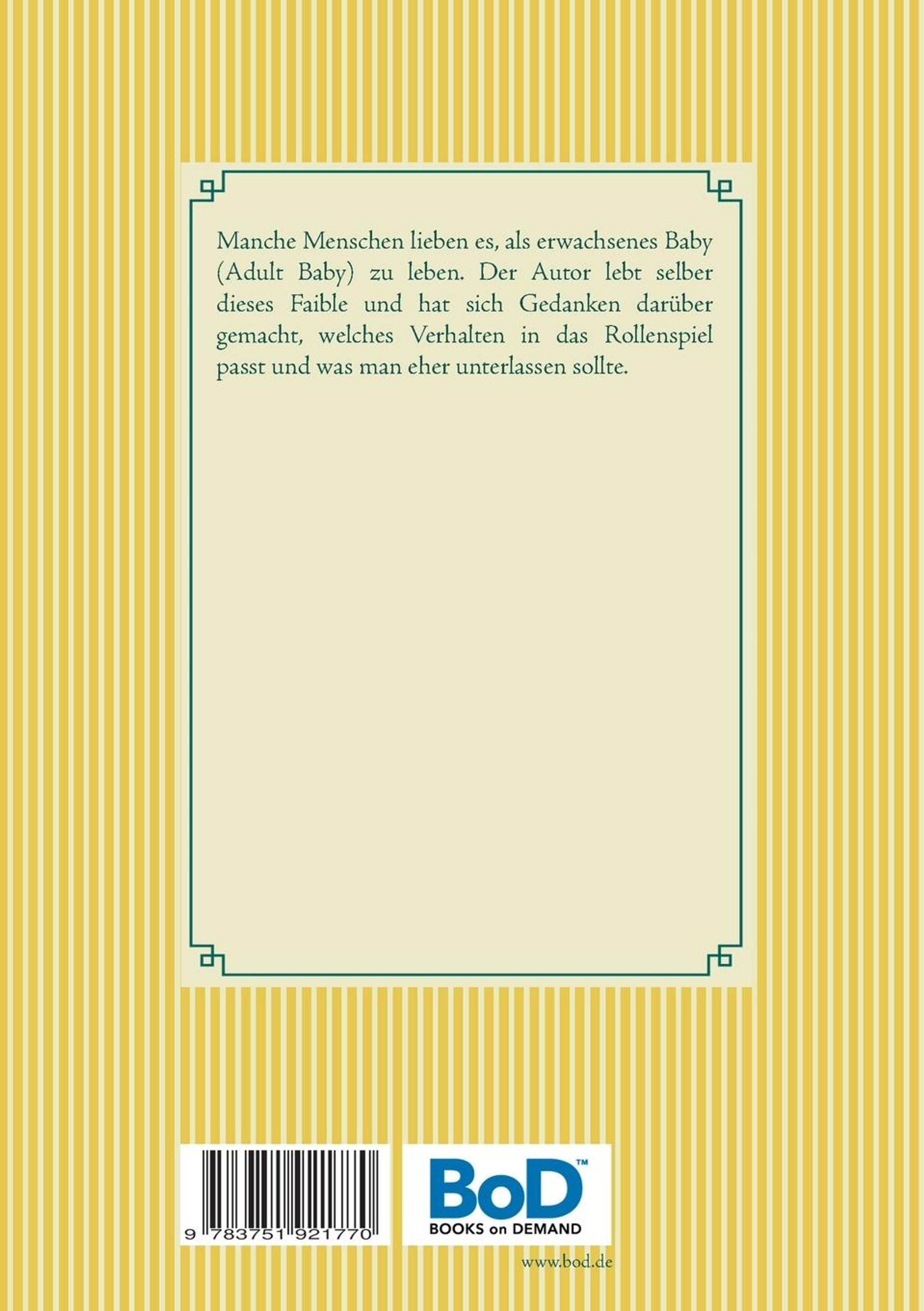 Manche Menschen lieben es, als erwachsenes Baby (Adult Baby) zu leben. Der Autor lebt selber dieses Faible und hat sich Gedanken darüber gemacht, welches Verhalten in das Rollenspiel passt und was man eher unterlassen sollte.