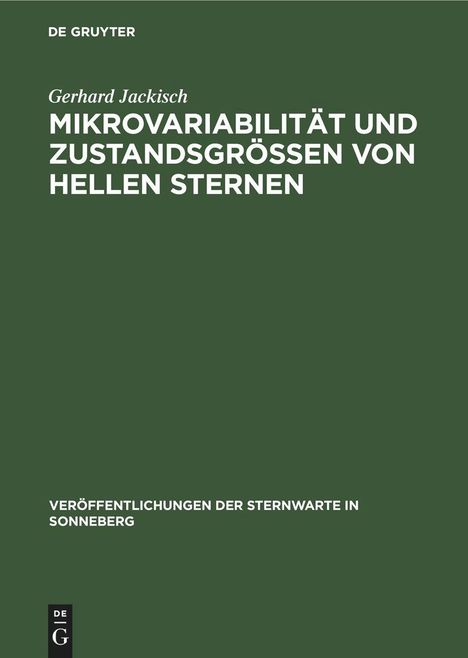 Gerhard Jackisch: Mikrovariabilität und Zustandsgrößen von hellen Sternen, Gebunden