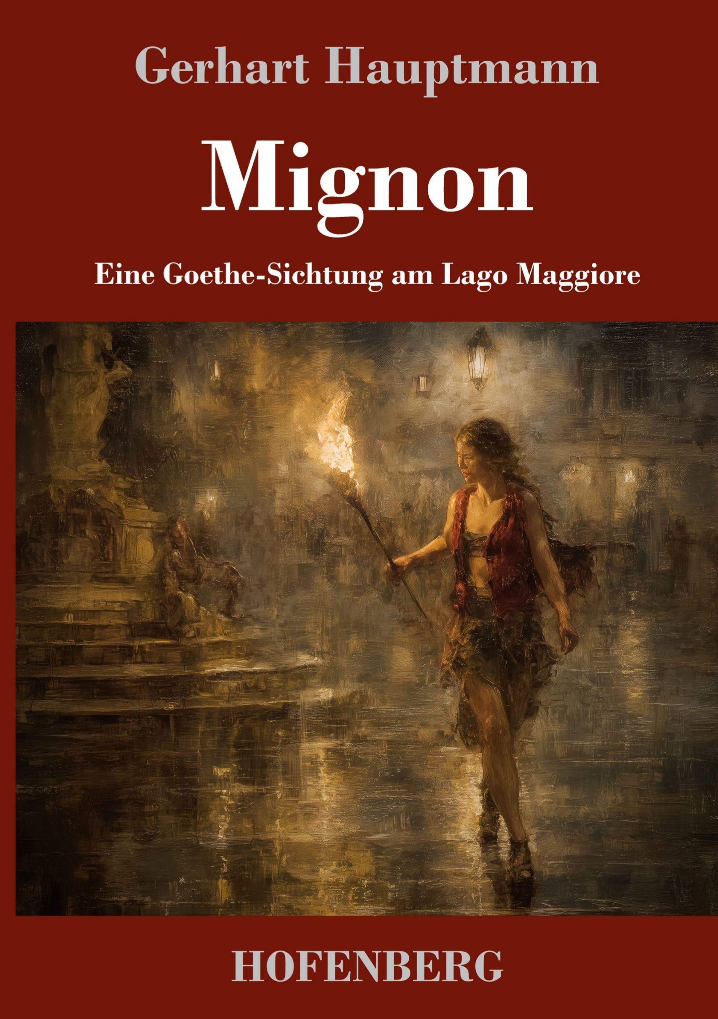 "Mignon. Eine Goethe-Sichtung am Lago Maggiore" von Gerhart Hauptmann. Illustration: Frau mit Fackel in nächtlicher Szene., Buch
