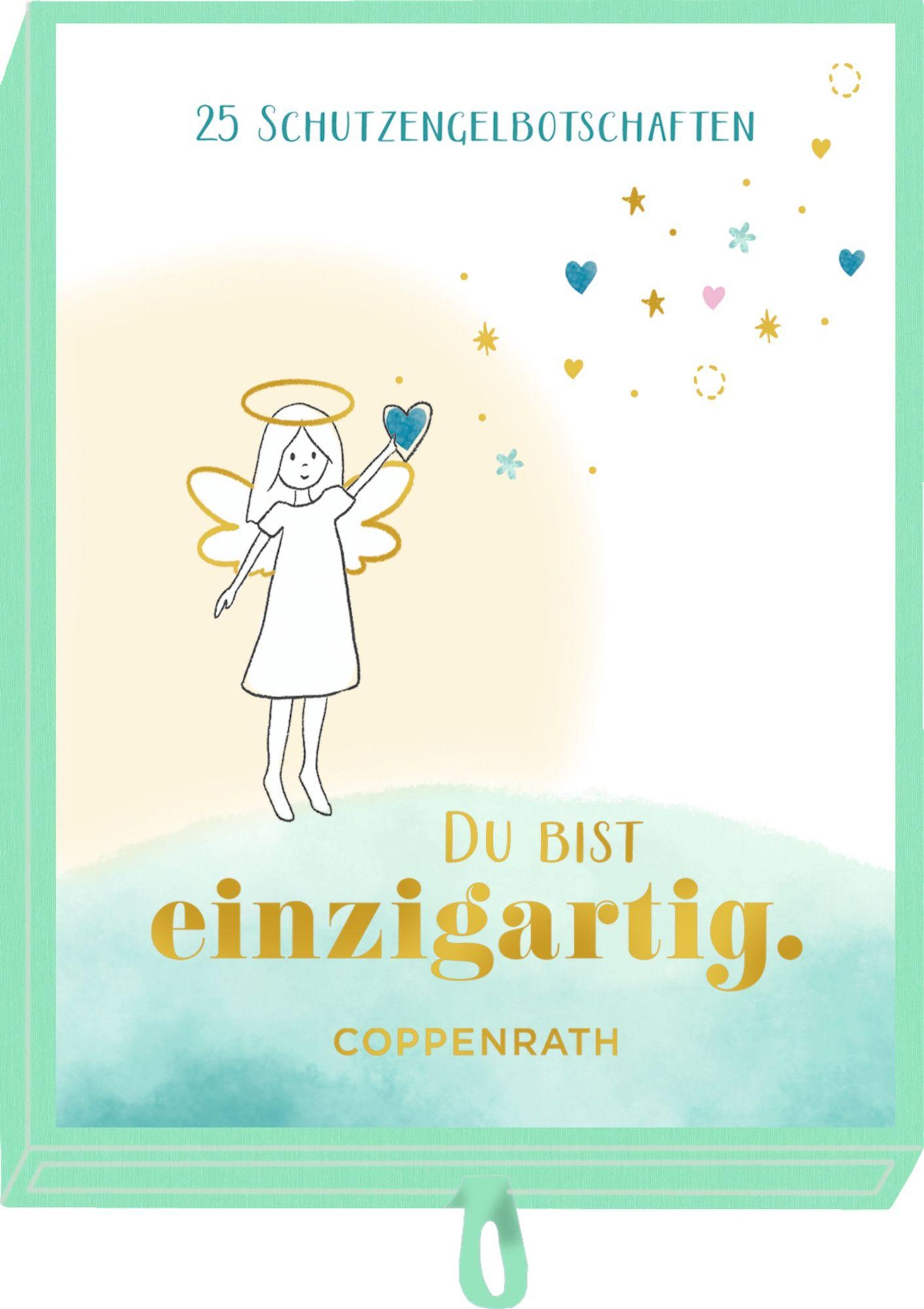 25 Schutzengelbotschaften. Du bist einzigartig. Coppenrath. Illustration eines Engels mit Herz umgeben von Sternen., Diverse