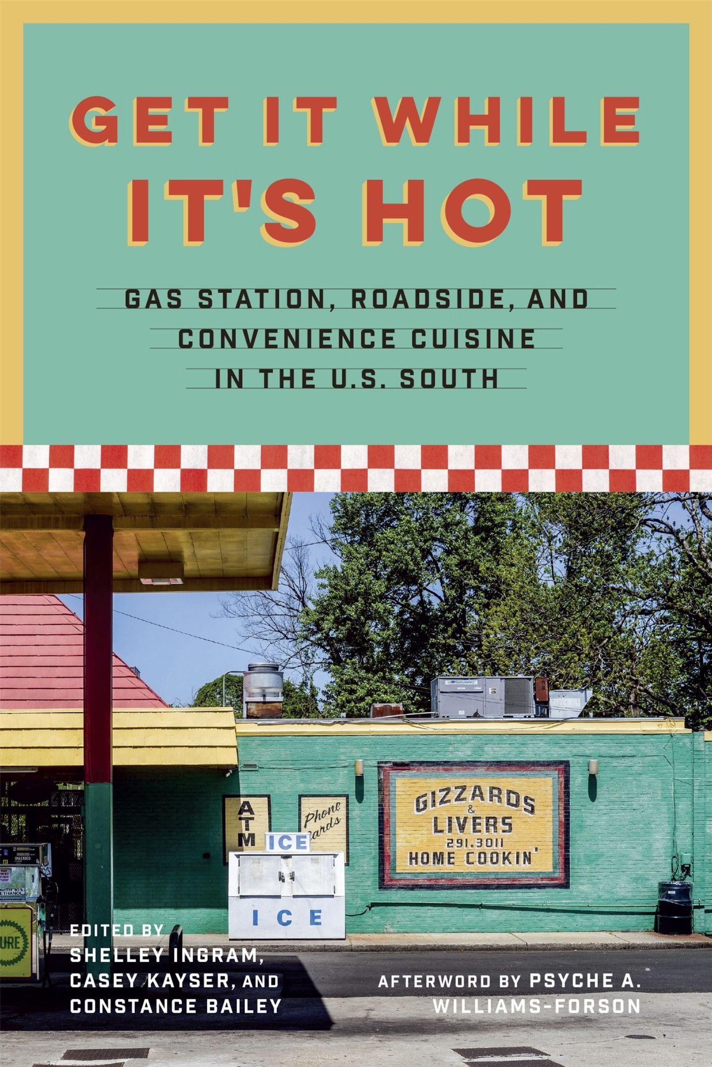 "GET IT WHILE IT'S HOT. Gas station, roadside, and convenience cuisine in the U.S. South. Eine Tankstelle mit Schildern.", Buch