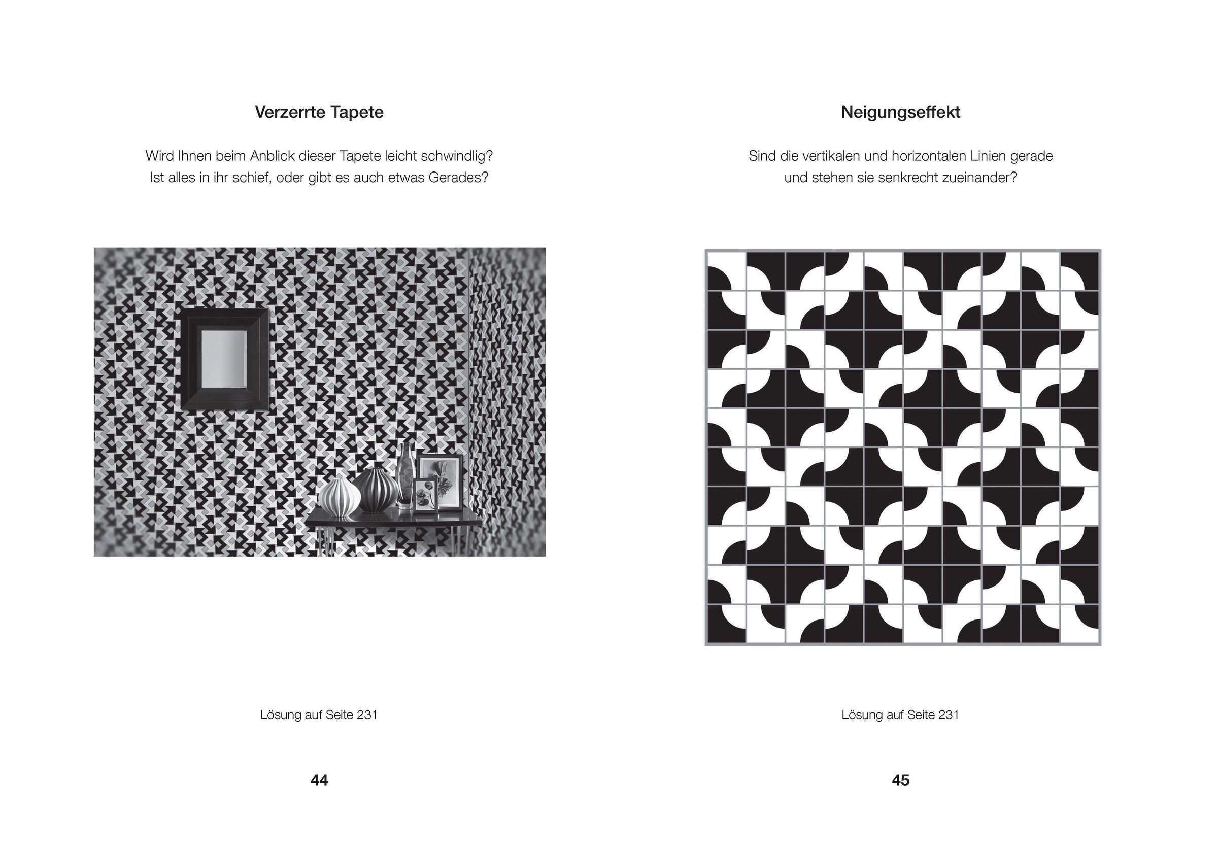 Diese faszinierenden Rätsel sind eine wahre Herausforderung für unsere Augen und Vorstellungskraft! Rätselfans kommen voll auf ihre Kosten, z. B. mit Illusionen, die sich zu drehen oder zu vibrieren scheinen bis hin zu versteckten Bildern und unmöglichen Figuren - absolut verblüffend und geradezu verwirrend. Die über 200 optischen Rätsel umfassen Größen- und Formillusionen, mehrdeutige Figuren, Helligkeits- und Bewegungsillusionen sowie visuelle und kognitive Tests.