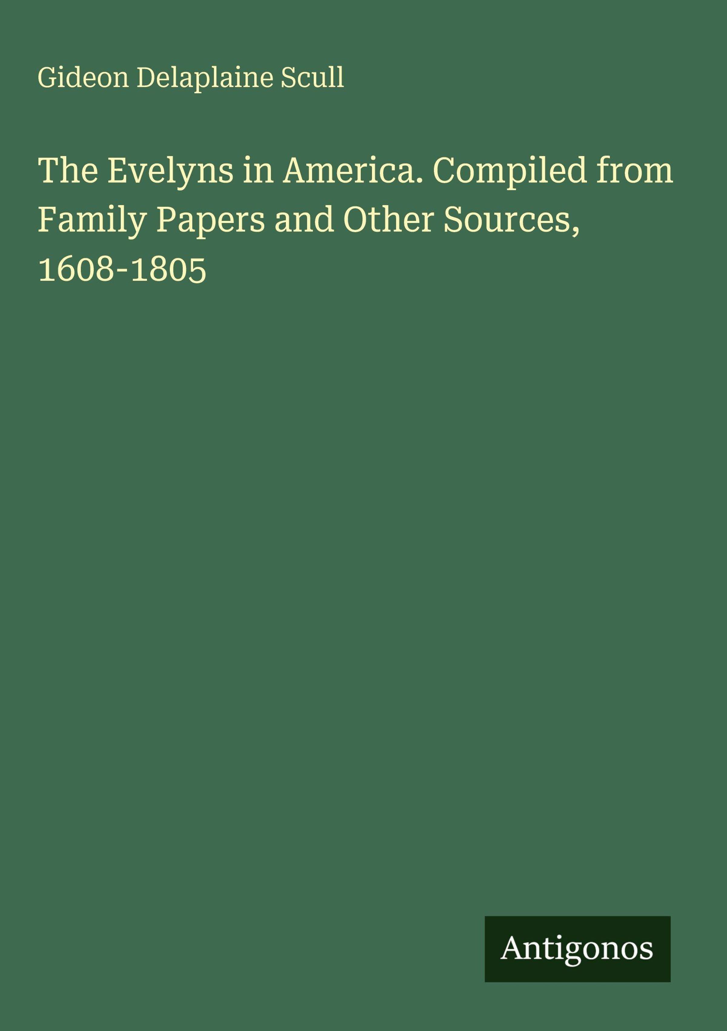 Gideon Delaplaine Scull: The Evelyns in America. Compiled from Family Papers and Other Sources, 1608-1805, Gebunden
