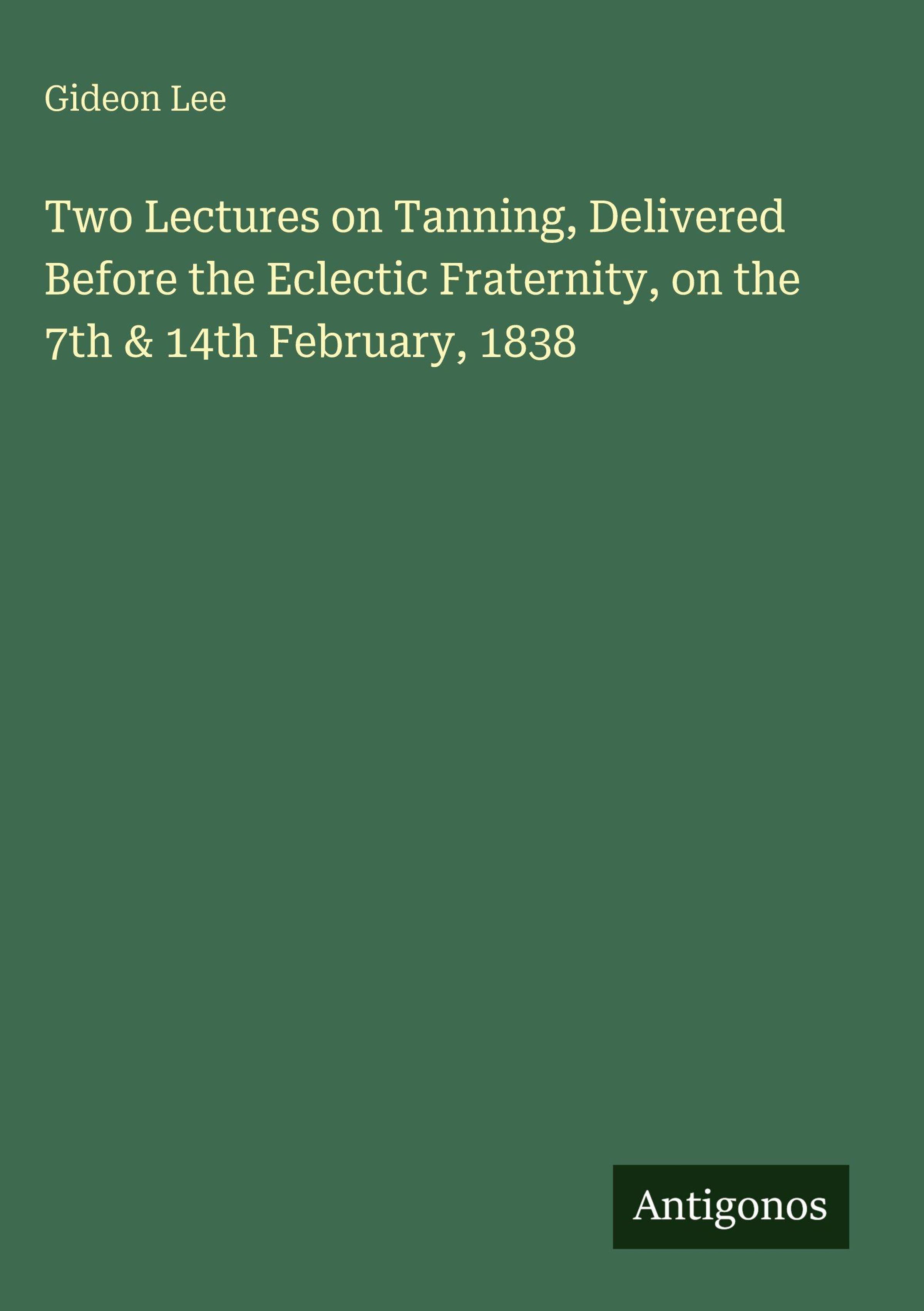 Gideon Lee: Two Lectures on Tanning, Delivered Before the Eclectic Fraternity, on the 7th & 14th February, 1838, Gebunden