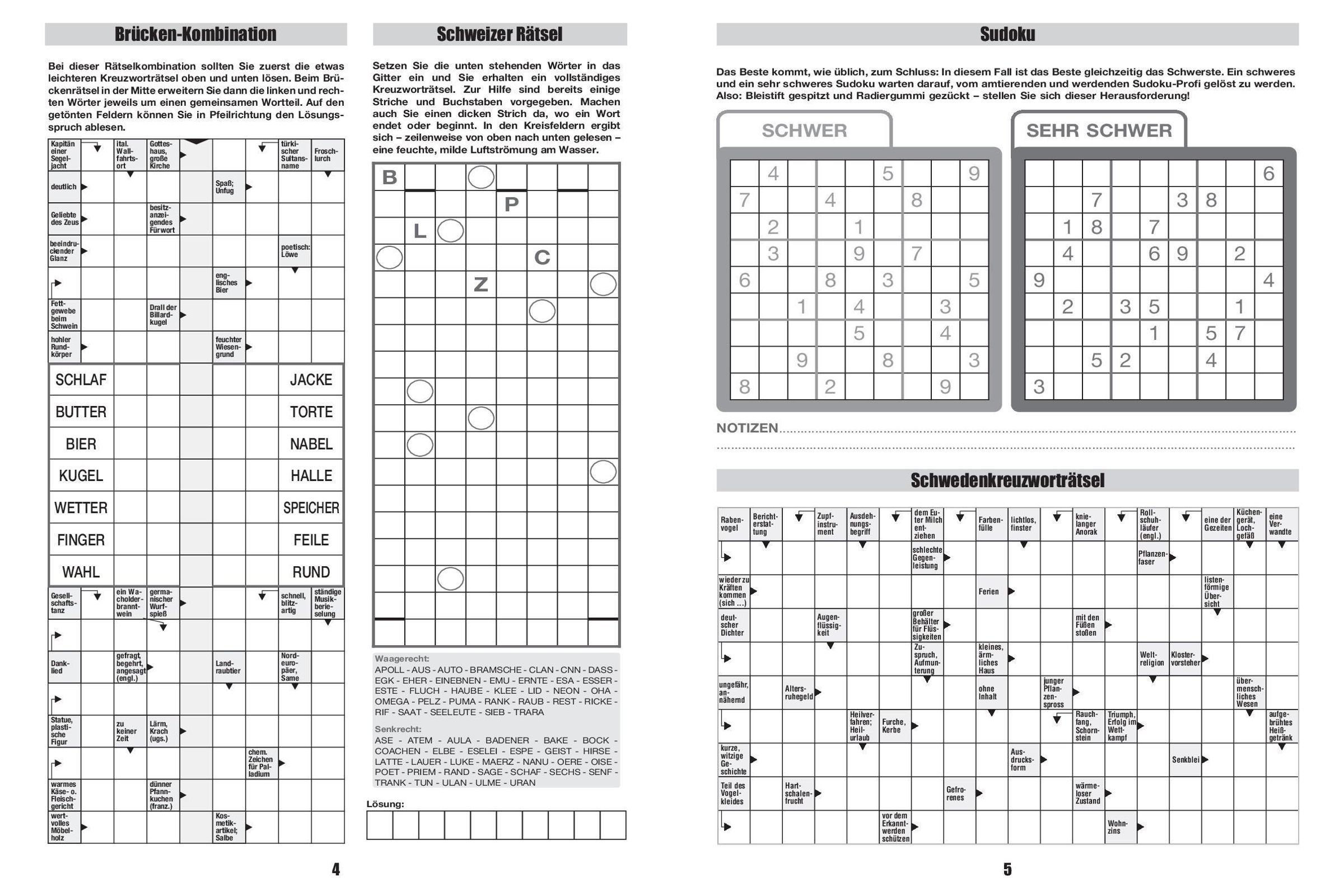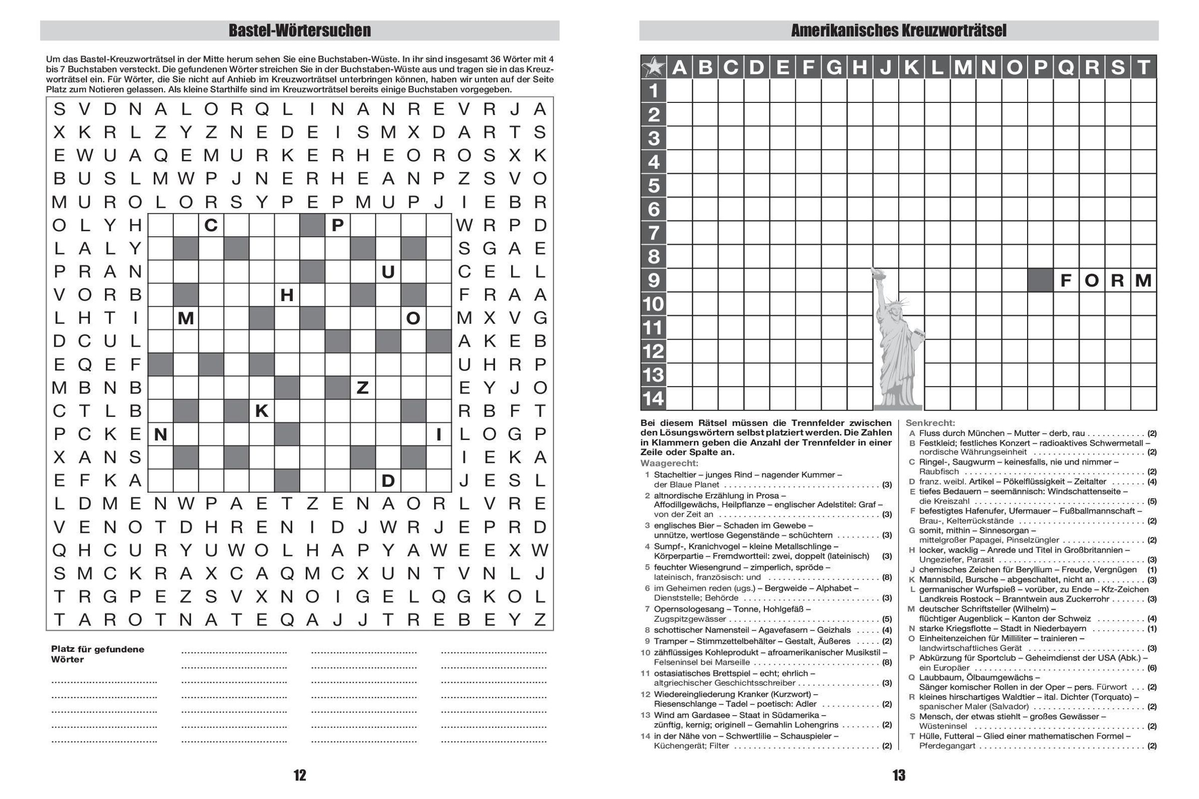 Kreuzworträtsel, Bilderrätsel, Silbenrätsel, Wabenrätsel, Zahlenrätsel und vieles mehr