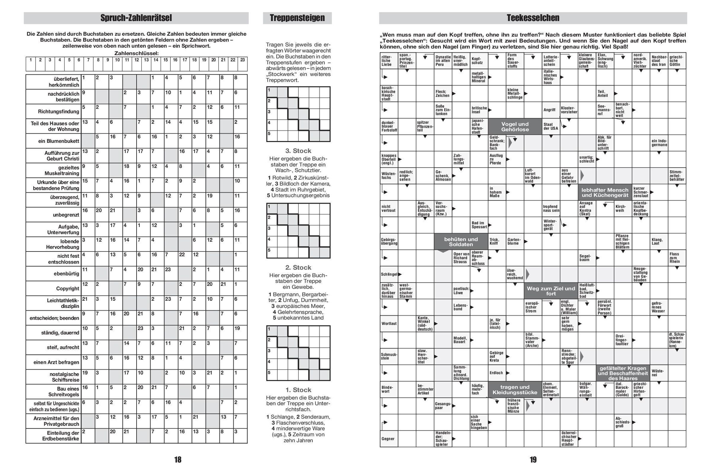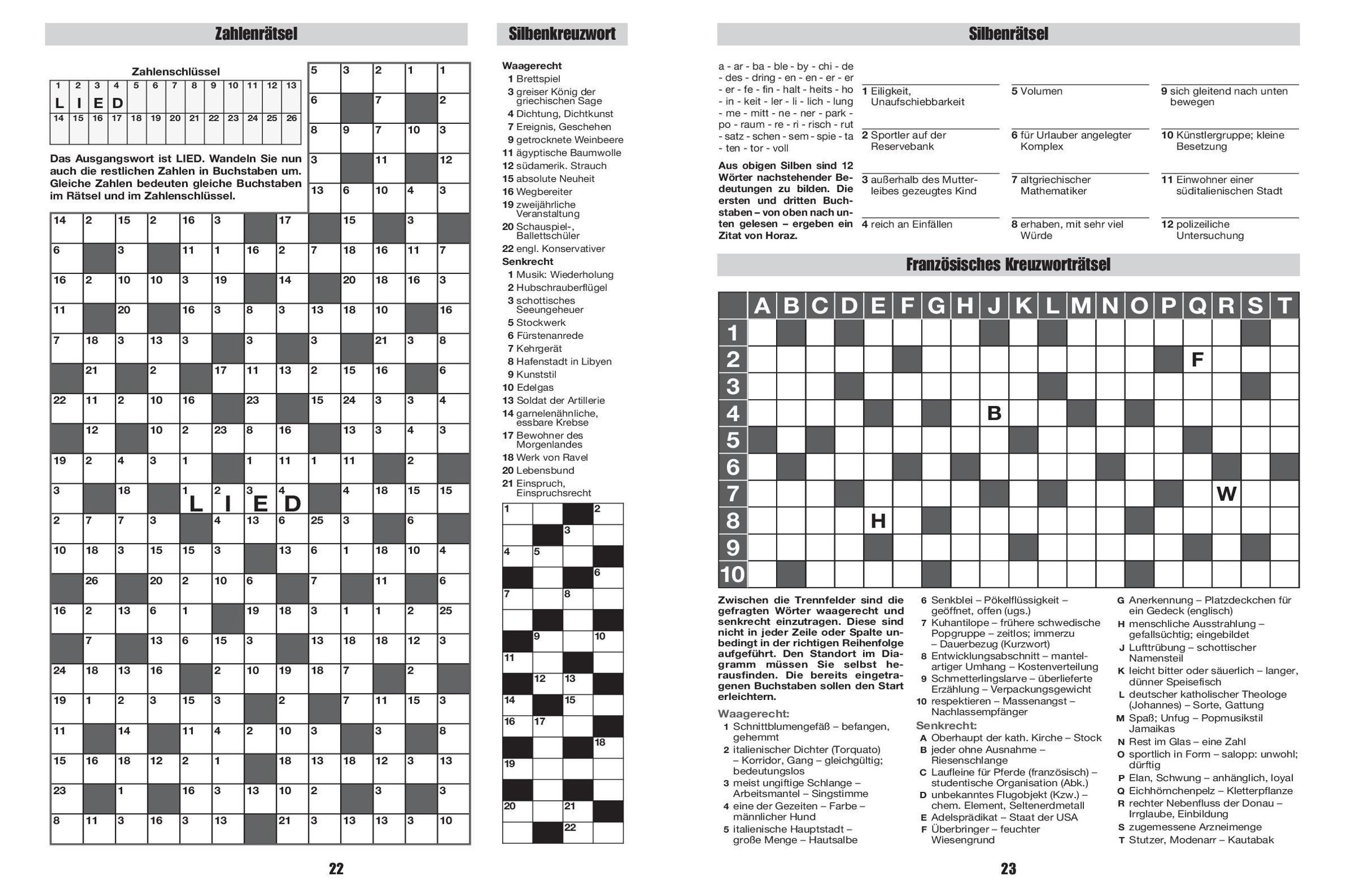 Kreuzworträtsel, Bilderrätsel, Silbenrätsel, Wabenrätsel, Zahlenrätsel und vieles mehr
