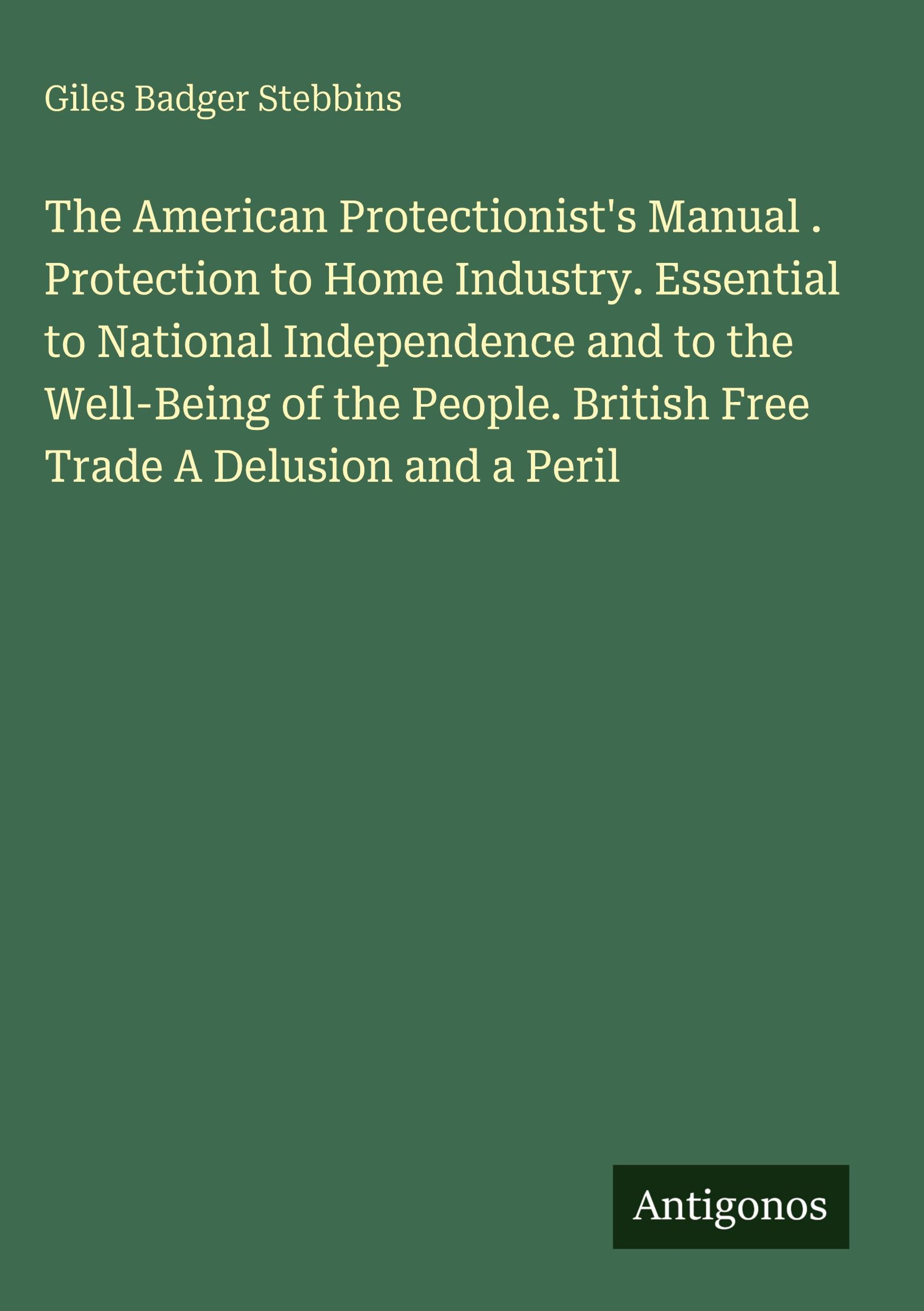 The American Protectionist's Manual . Protection to Home Industry. Essential to National Independence and to the Well-Being of the People. British Free Trade A Delusion and a Peril