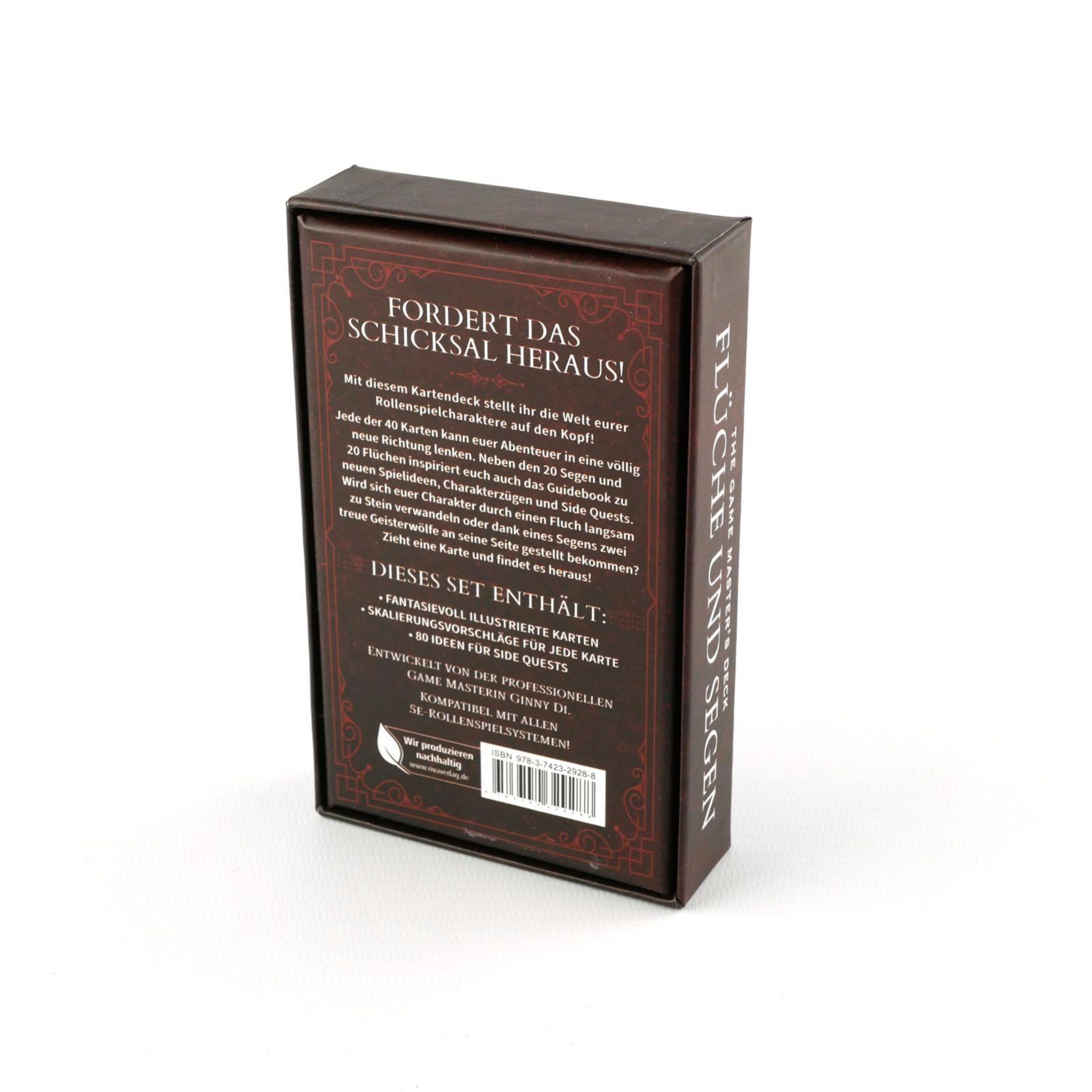 Jede der 40 Karten kann euer Abenteuer in eine völlig neue Richtung lenken. Neben den 20 Segen und 20 Flüchen inspiriert euch auch das Booklet zu neuen Spielideen, Charakterzügen und Side Quests. Wird sich euer Charakter durch einen Fluch langsam zu Stein verwandeln oder dank eines Segens zwei treue Geisterwölfe an seine Seite gestellt bekommen? Zieht eine Karte und findet es heraus!