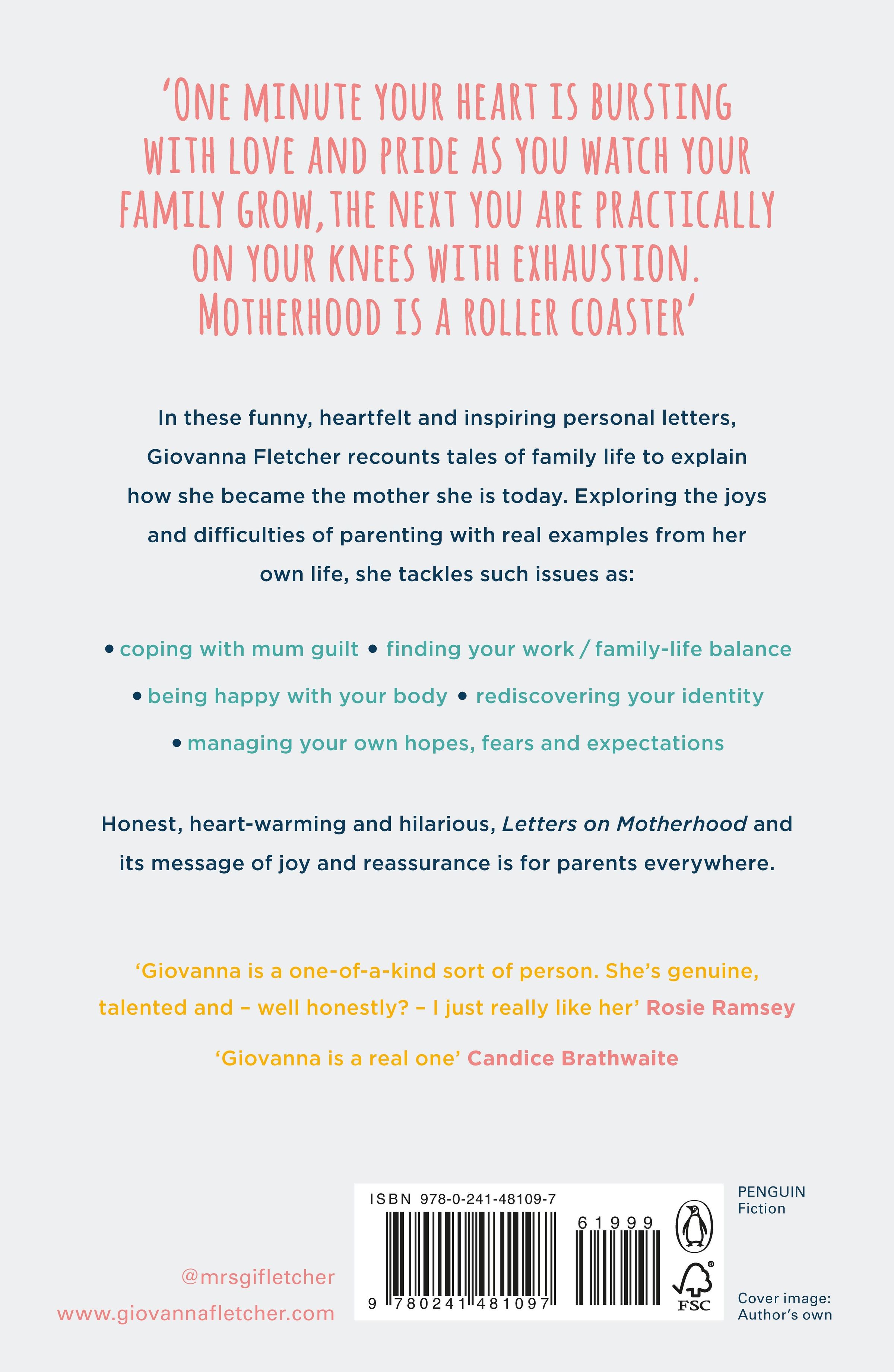 With stories that mothers everywhere can relate to, Letters on Motherhood is the perfect gift this Mother's Day 'Inspiring, beautiful and eye opening. Thank you Giovanna. You've made many mothers feel like they're not alone' 5***** Reader Review 'As heartwarming as it is moving' Hello! NOW WITH FOUR EXCLUSIVE NEW LETTERS _______ In this beautiful and poignant collection, Giovanna writes deeply heartfelt letters to everyone who has helped her to become the mother she is today. To her young sons: Buzz, Buddy and Max. To Tom, and her mum and dad. But also, to herself, her body, and more. And finally, to all of the mums, dads and mums-to-be out there doing the work too. These letters cover everything from her fears and hopes to the love and uncertainty of being a mother today. Honest, heartwarming and hilarious, Giovanna's relatable musings on motherhood are both a joy and a comfort, paying testament to the power of family. With stories parents everywhere can relate to, Letters on Motherhood is the perfect gift for any Mum. _______ 'Fantastically honest, witty and real . . . I laughed and cried!' 5***** Reader Review 'Giovanna is a real one' Candice Brathwaite, bestselling author of I Am Not Your Baby Mother 'Cried, laughed and could relate to nearly every word' 5***** Reader Review 'Giovanna is a one of a kind sort of person. She's genuine, talented, and well honestly? I just really like her' Rosie Ramsay, bestselling author of Sh**ged. Married. Annoyed.