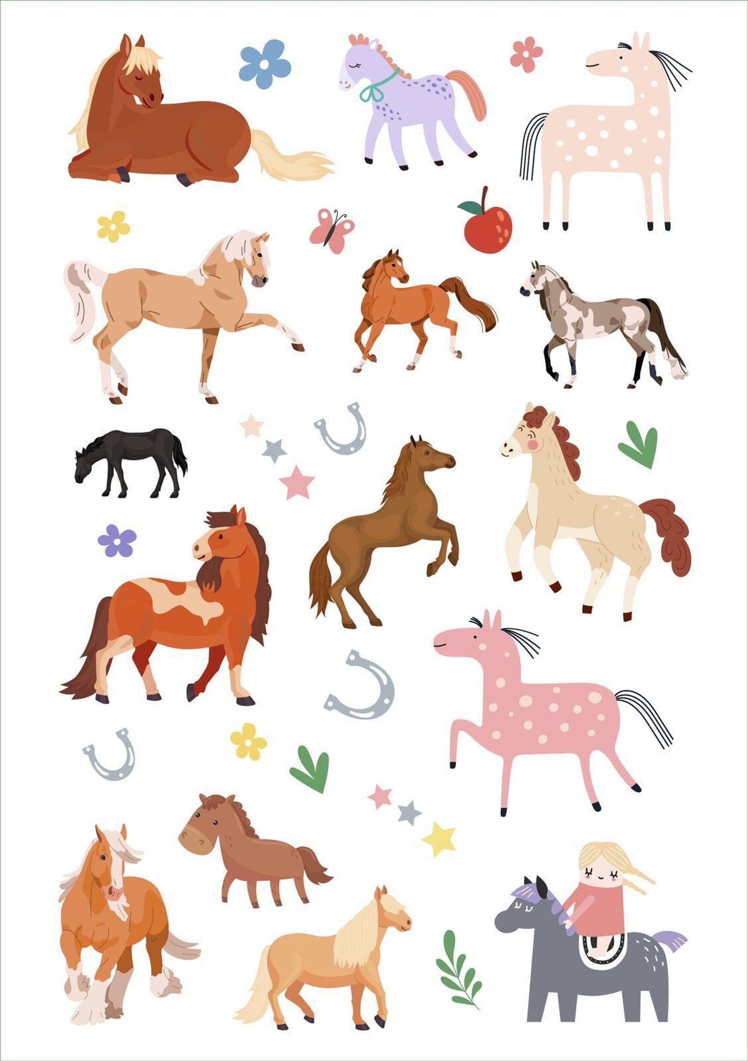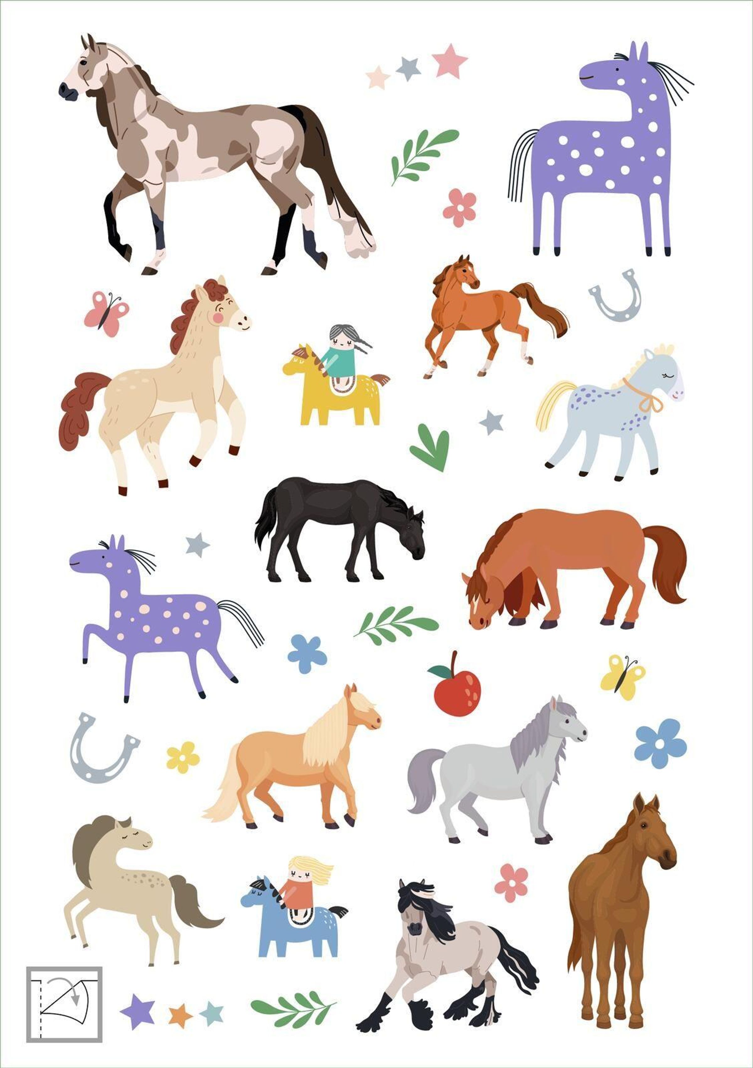 Über 200 bunt-metallisch glänzende Pferde-Sticker warten darauf, gesammelt, geklebt und verschenkt zu werden. Ob Hufeisen, Springpferde oder niedliche Ponys - diese Sticker bringen die Augen von Kindern ab 4 Jahren zum Leuchten.