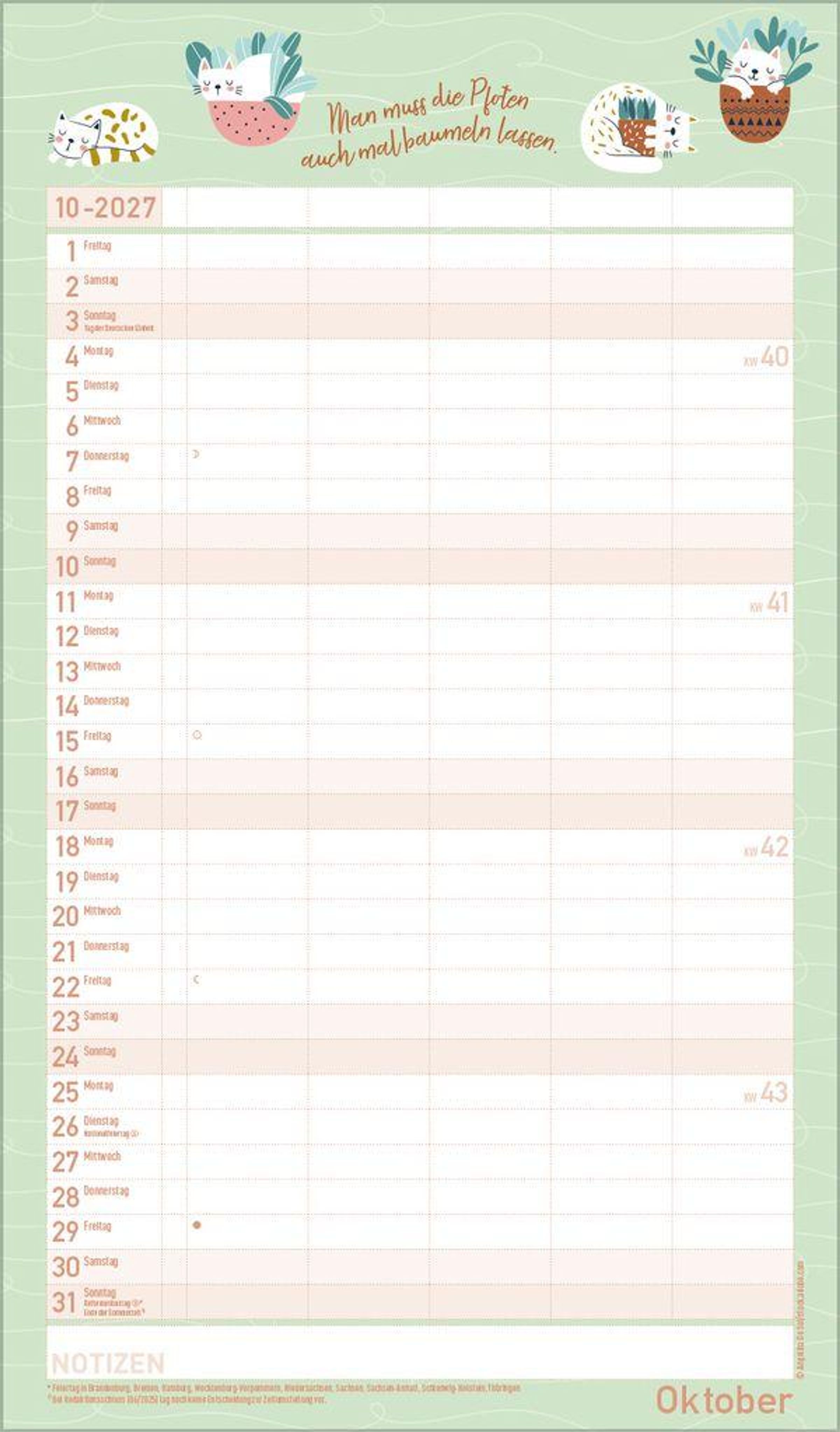 - Praktische Zusatzspalte für Ferien, Müll und weitere Aktivitäten