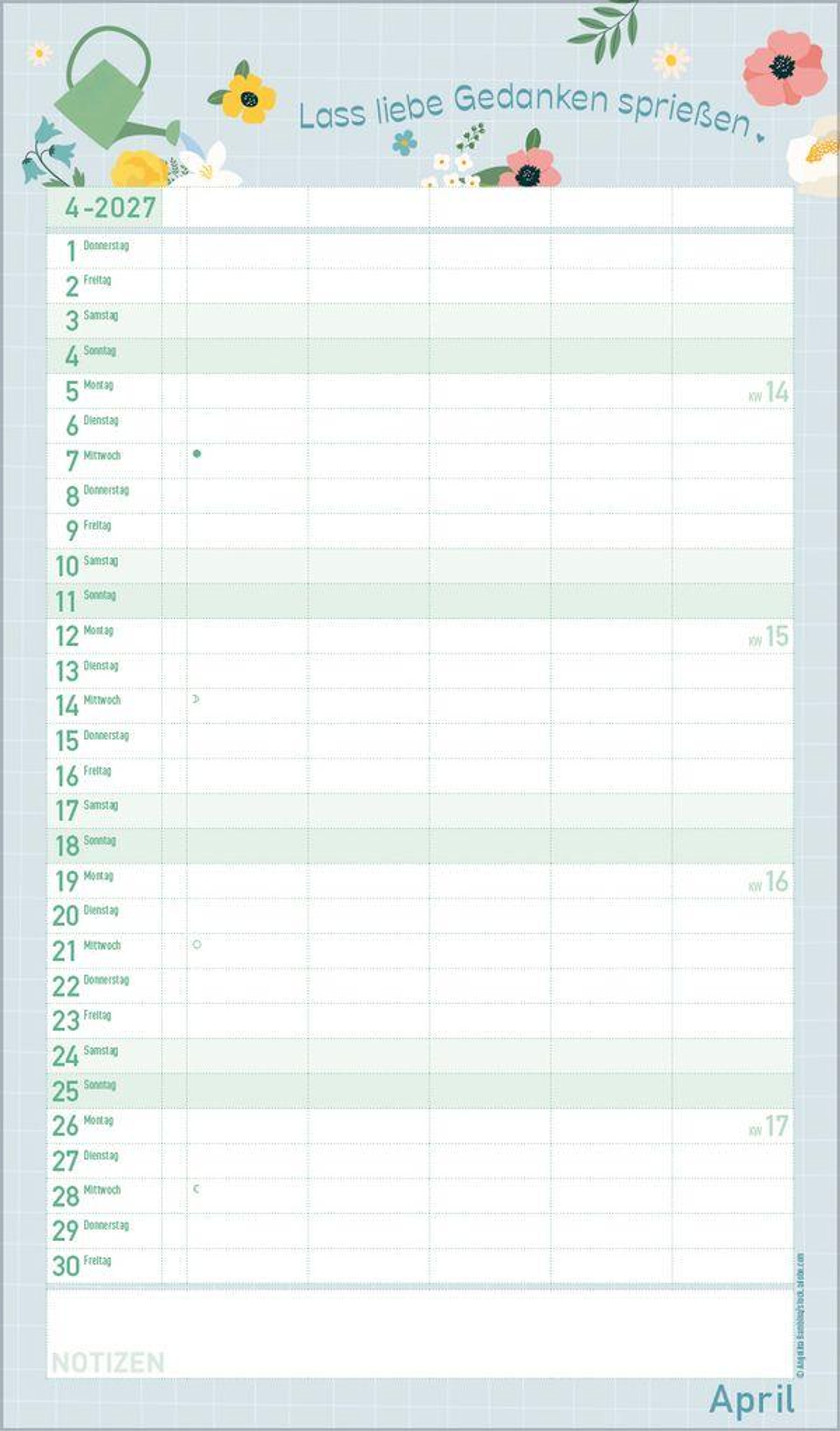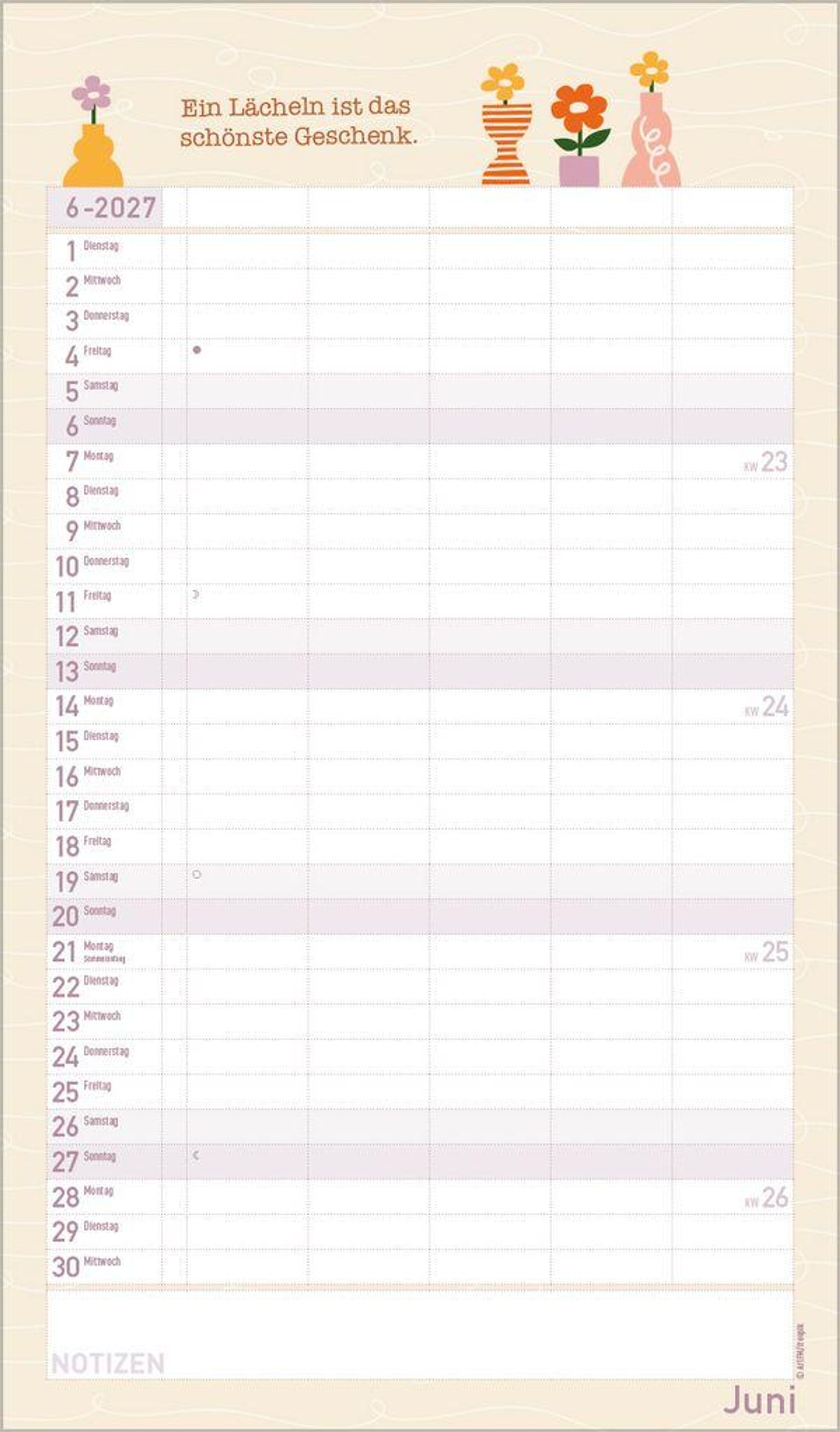 - Terminkalender mit viel Platz für Eintragungen, ohne störende Bilder in den Spalten