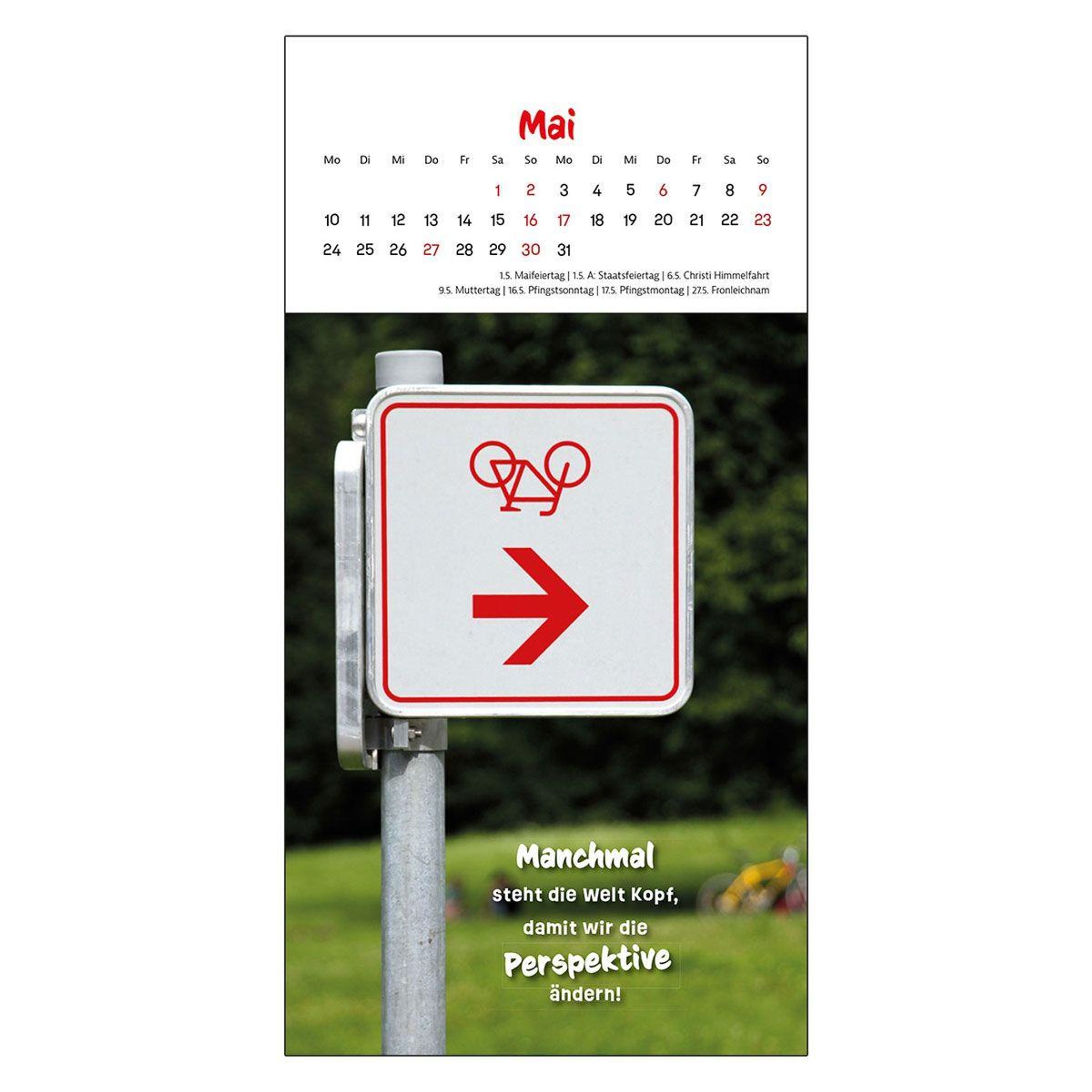 Verkehrszeichen regeln eigentlich bloß den Straßenverkehr. Humor ist da selten gefragt. In diesem Kalender ist das aber anders: witzig ergänzte und ungewöhnliche Verkehrsschilder zeigen, dass selbst Verkehrsregeln manchmal unfreiwillig komisch sind. Passende Zitate und Bibelstellen untermalen die Fotos und bringen komische Situationen auf den Punkt.