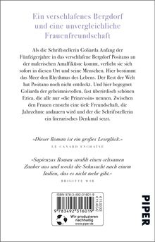 Als die Schriftstellerin Goliarda Anfang der Fünfzigerjahre in das verschlafene Bergdorf Positano an der malerischen Amalfiküste kommt, verliebt sie sich sofort in diesen Ort und seine Menschen. Hier bestimmt das Meer den Rhythmus des Lebens. Der Rest der Welt hat Positano noch nicht entdeckt. Hier begegnet Goliarda der geheimnisvollen, fast überirdisch schönen Erica, die alle nur 'die Prinzessin' nennen. Zwischen den Frauen entsteht eine tiefe Freundschaft, die Jahrzehnte andauern wird und der die Schriftstellerin ein literarisches Denkmal setzt.