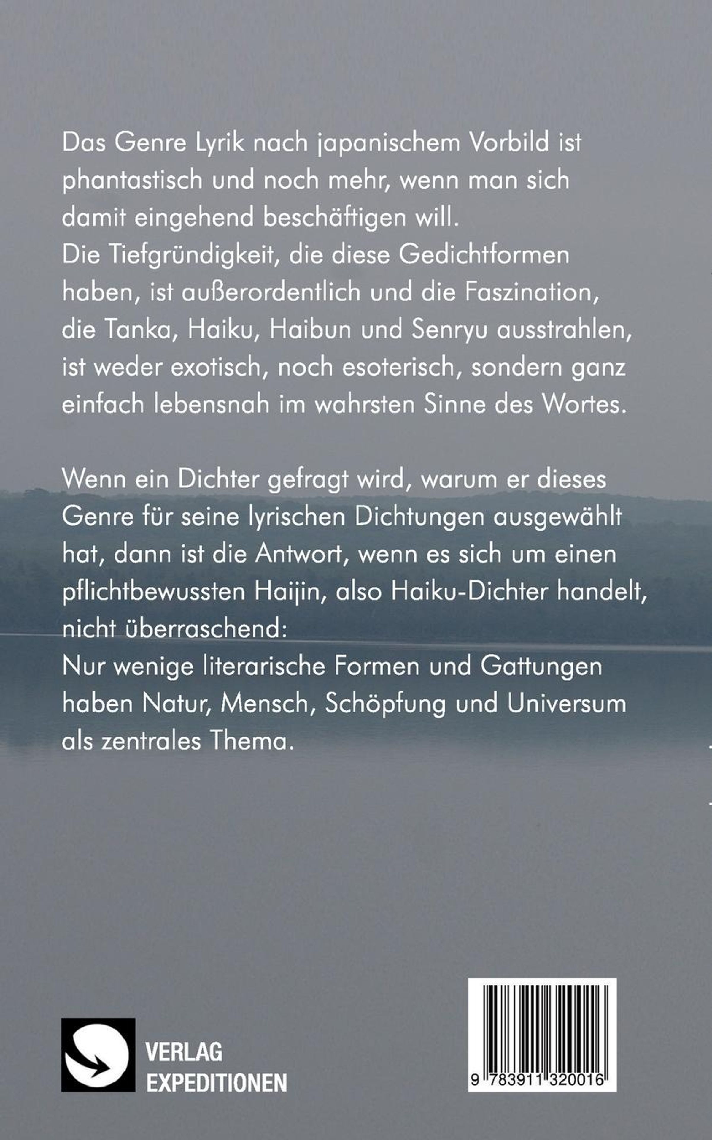 Das Genre Lyrik nach japanischem Vorbild ist phantastisch und noch mehr, wenn man sich damit eingehend beschäftigen will. Die Tiefgründigkeit, die diese Gedichtformen haben, ist außerordentlich und die Faszination, die Tanka, Haiku, Haibun und Senryu ausstrahlen, ist weder exotisch, noch esoterisch, sondern ganz einfach lebensnah im wahrsten Sinne des Wortes. Wenn ein Dichter gefragt wird, warum er dieses Genre für seine lyrischen Dichtungen ausgewählt hat, dann ist die Antwort, wenn es sich um einen pflichtbewussten Haijin, also Haiku-Dichter handelt, nicht überraschend: Nur wenige literarische Formen und Gattungen haben Natur, Mensch, Schöpfung und Universum als zentrales Thema.