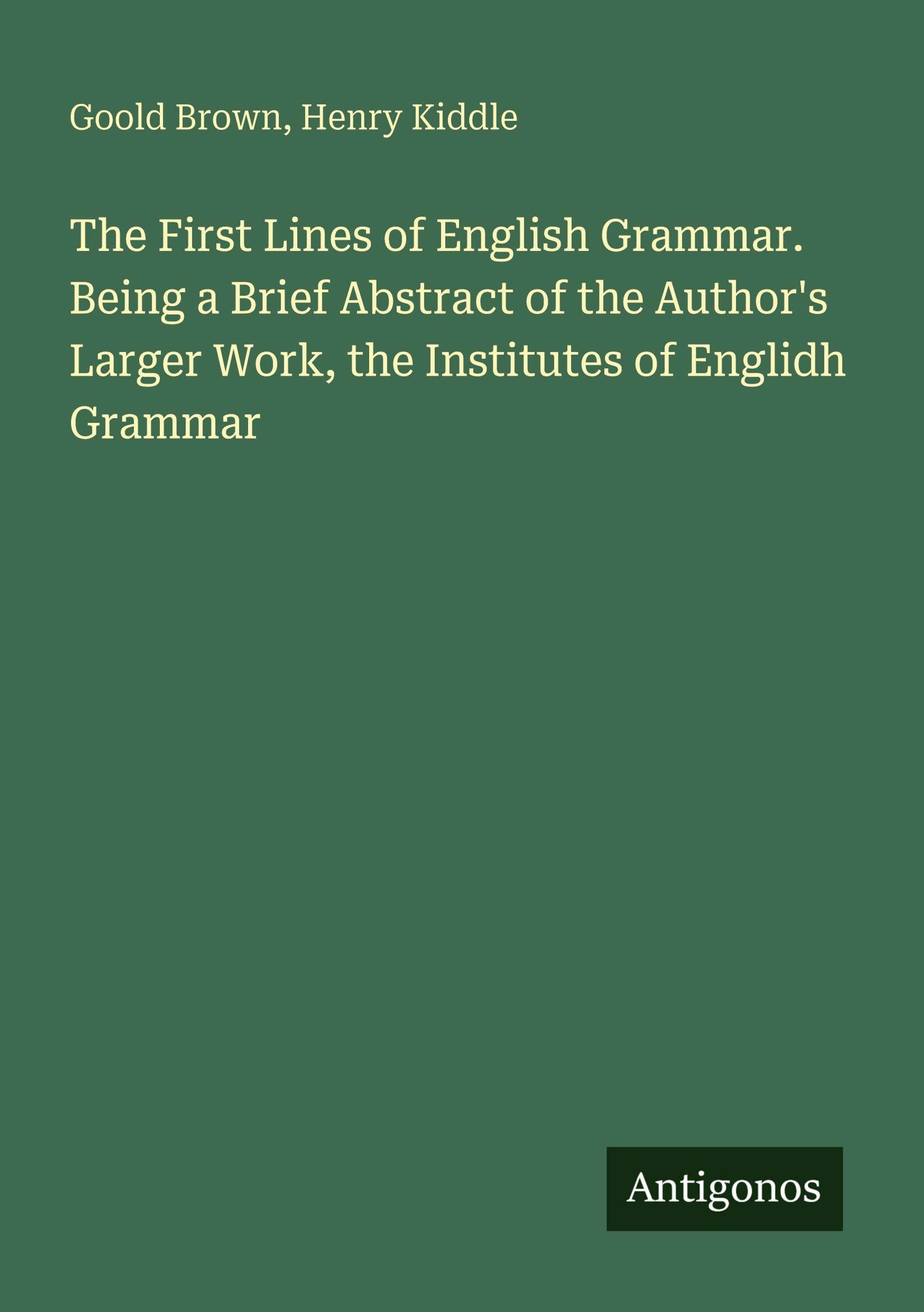 The First Lines of English Grammar. Being a Brief Abstract of the Author's Larger Work, the Institutes of Englidh Grammar