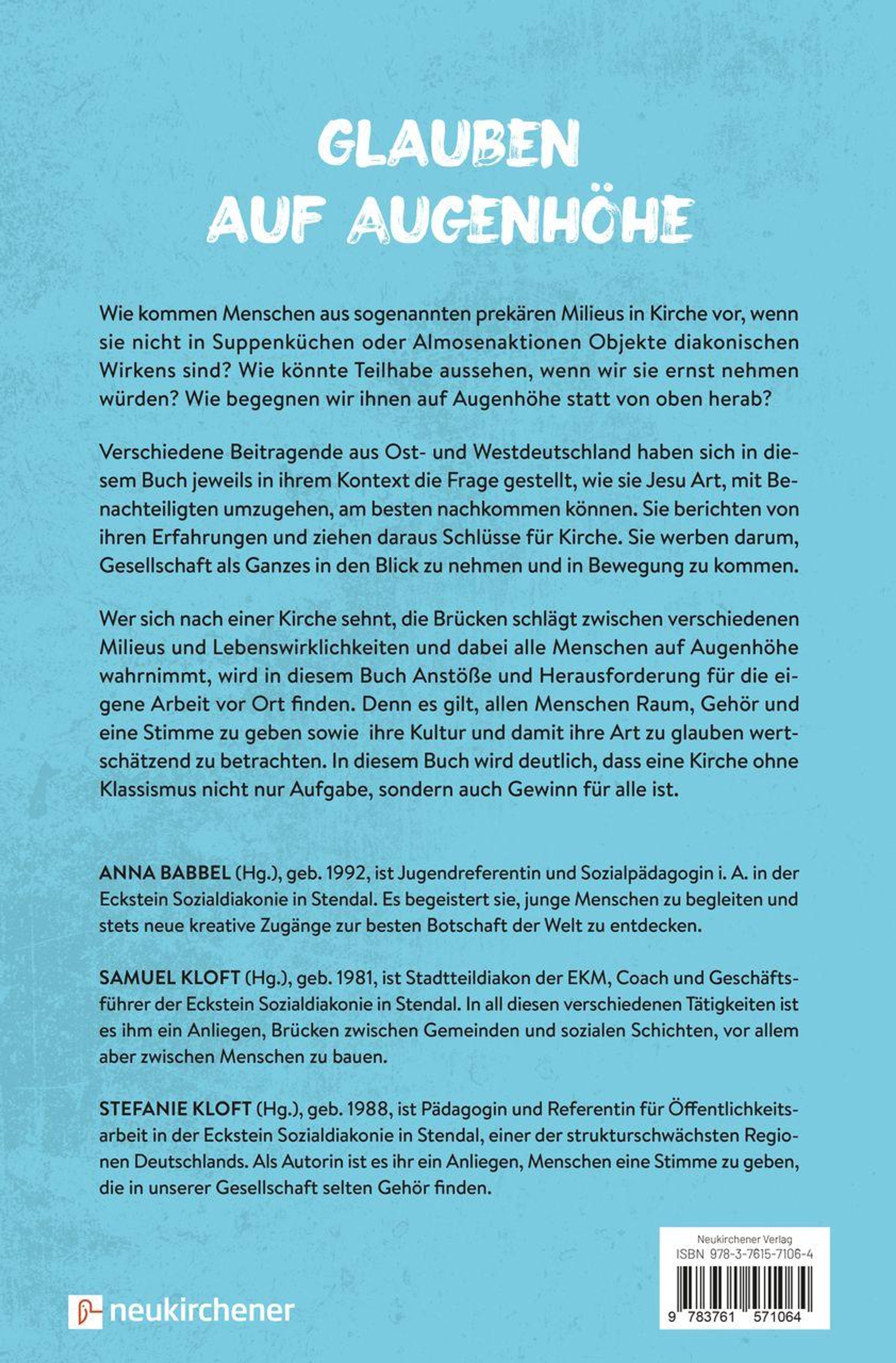 In zahlreichen Beiträgen geben Autor: innen aus Ost- und Westdeutschland ihre Erfahrungen weiter und zeigen auf, wie wir Kirche ohne Klassismus näherkommen. Sie werben darum, die eigenen Prägungen zu reflektieren, in Bewegung zu kommen und Augenhöhe zu ermöglichen.
