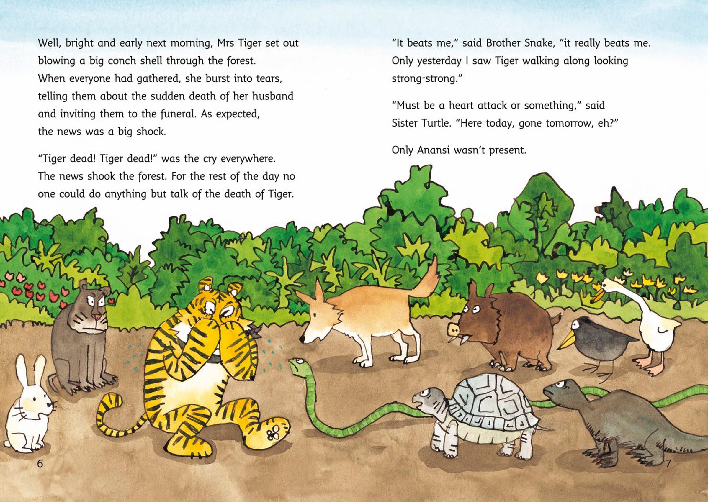 In these two animal stories from the Caribbean, find out in the first why Tiger wanted to get rid of all the other animals and keep the jungle for himself and what clever Anansi did about it, and in the second how shy Owl nearly lost everything because he didn't have the courage to show his face.