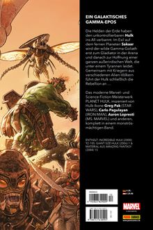 Das moderne Marvel- und Science-Fiction-Meisterwerk PLANET HULK, inszeniert von Hulk-Ikone Greg Pak (STAR WARS), Carlo Pagulayan (IRON MAN), Aaron Lopresti (MS. MARVEL) und anderen, komplett in einem monströsmächtigen Band.