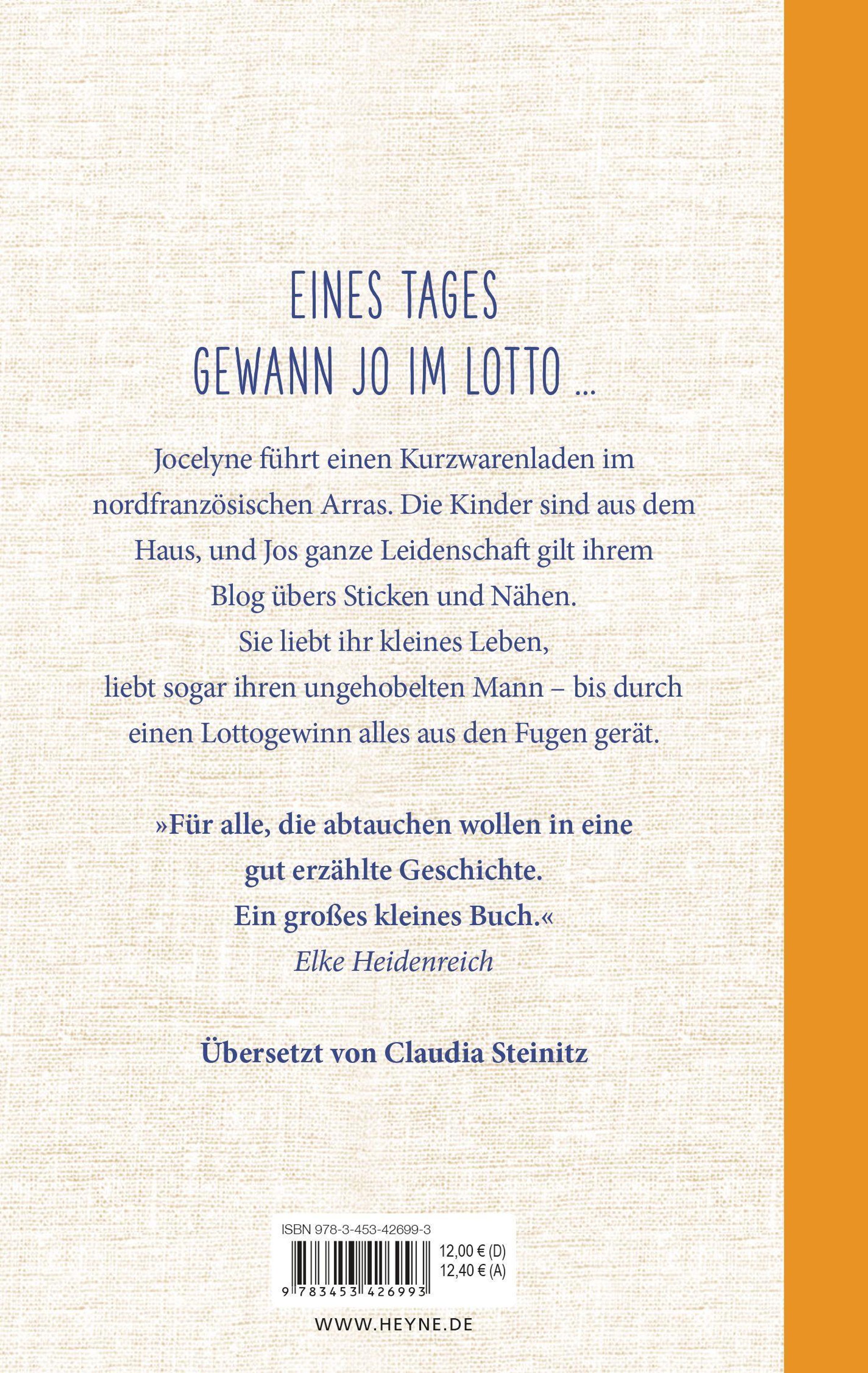 Jocelyne führt einen Kurzwarenladen im nordfranzösischen Arras. Die Kinder sind aus dem Haus, und Jos ganze Leidenschaft gilt ihrem Internet-Blog übers Sticken und Nähen. Sie liebt ihr kleines Leben, liebt sogar ihren ungehobelten Mann - bis durch einen Lottogewinn alles aus den Fugen gerät.