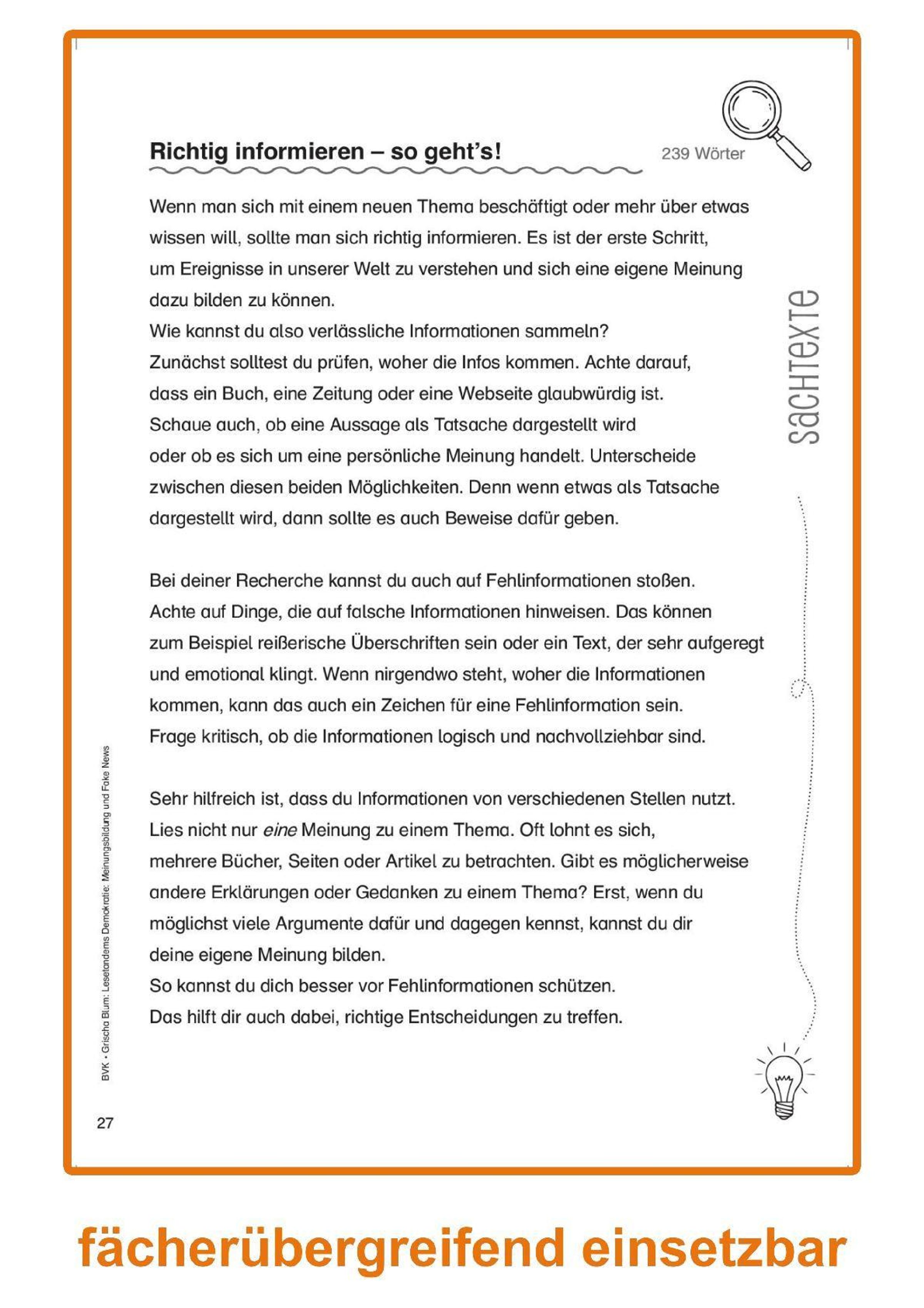 Leseförderung und Demokratieunterricht (wie z. B. in der Verfassungsviertelstunde) verknüpfen - mit Lesetandems zum Thema Meinungsbildung und Fake News! Mit den abwechslungsreichen Texten motivieren Sie Kinder ab der dritten Klasse zum Lesen und führen sie an demokratische Werte heran. Die Geschichten und Sachtexte beschäftigen sich mit der Stellung der Medien in unserer Demokratie, den Besonderheiten von Social Media, Fehlinformationen und damit, wie man sich richtig informieren kann. Die Lesetandems sind ohne viel Vorbereitung direkt im Unterricht einsetzbar. Durch die unterschiedlichen Textlängen ist eine Differenzierung möglich.
