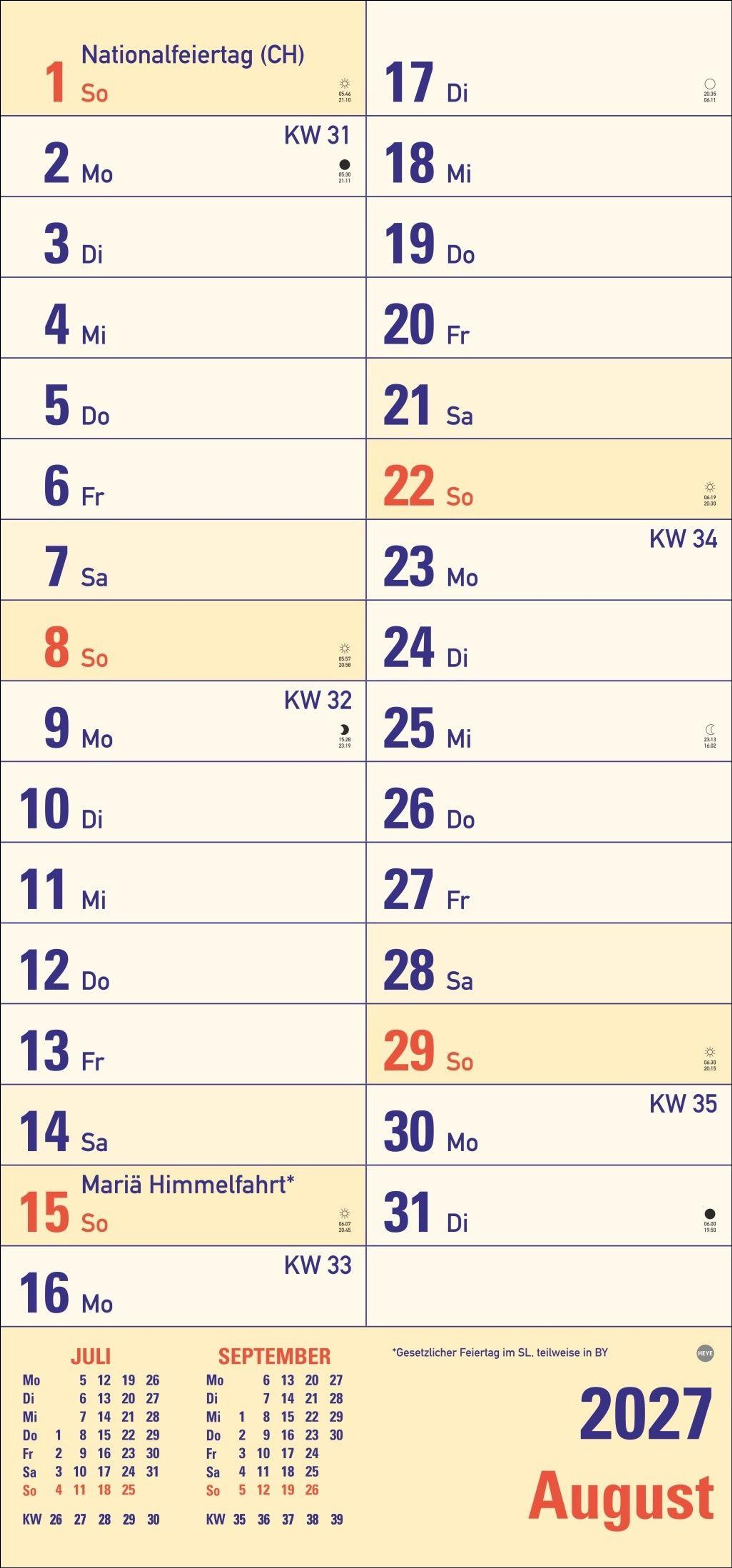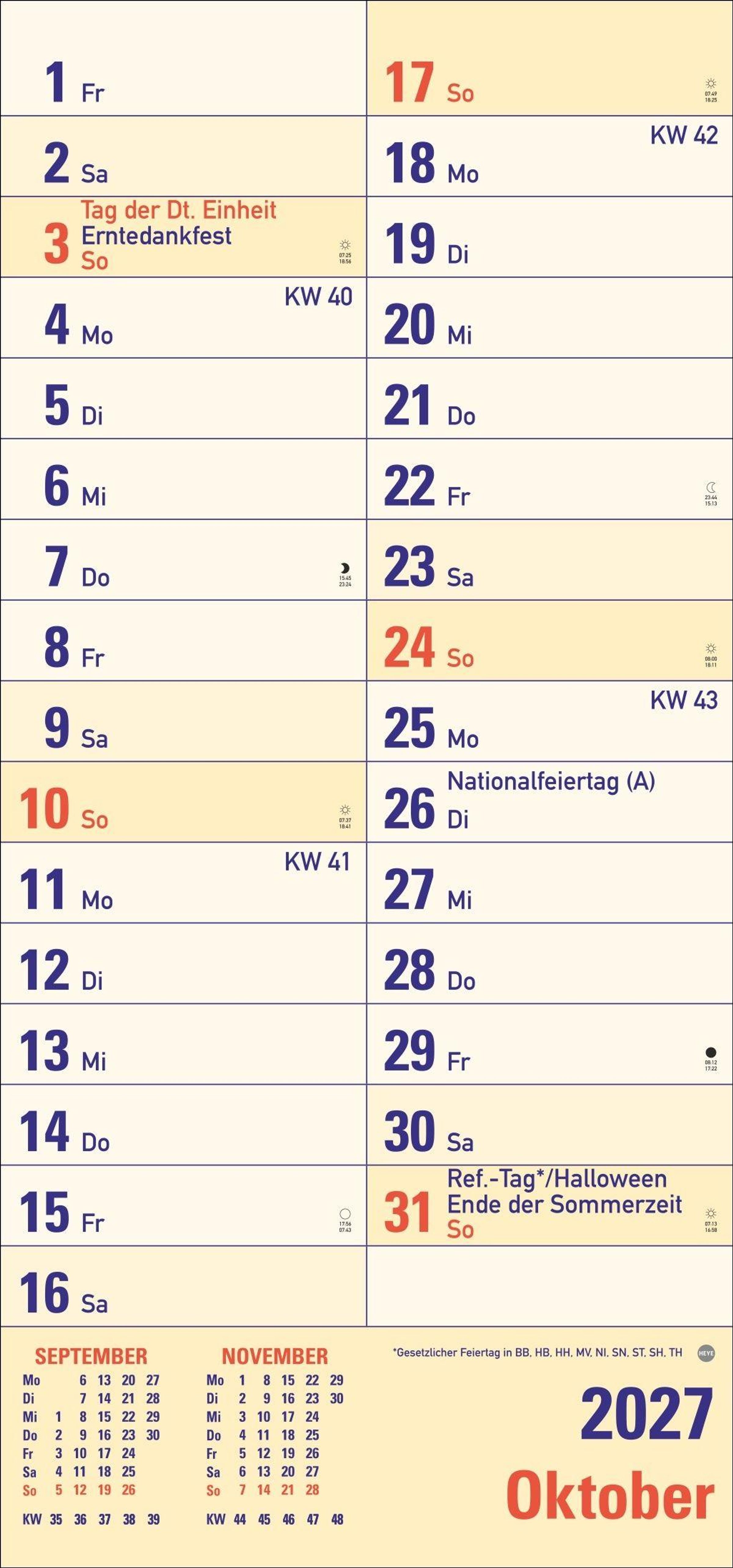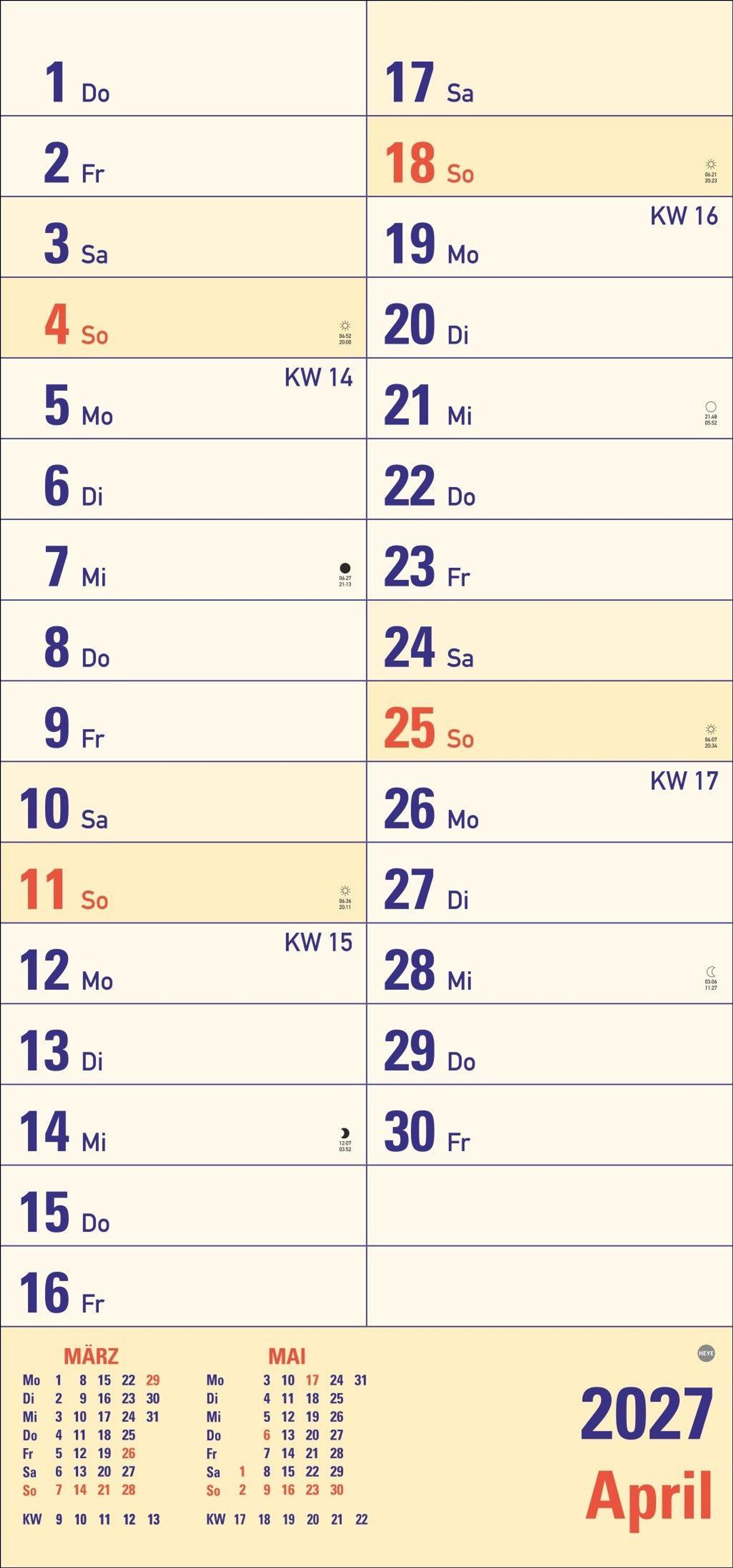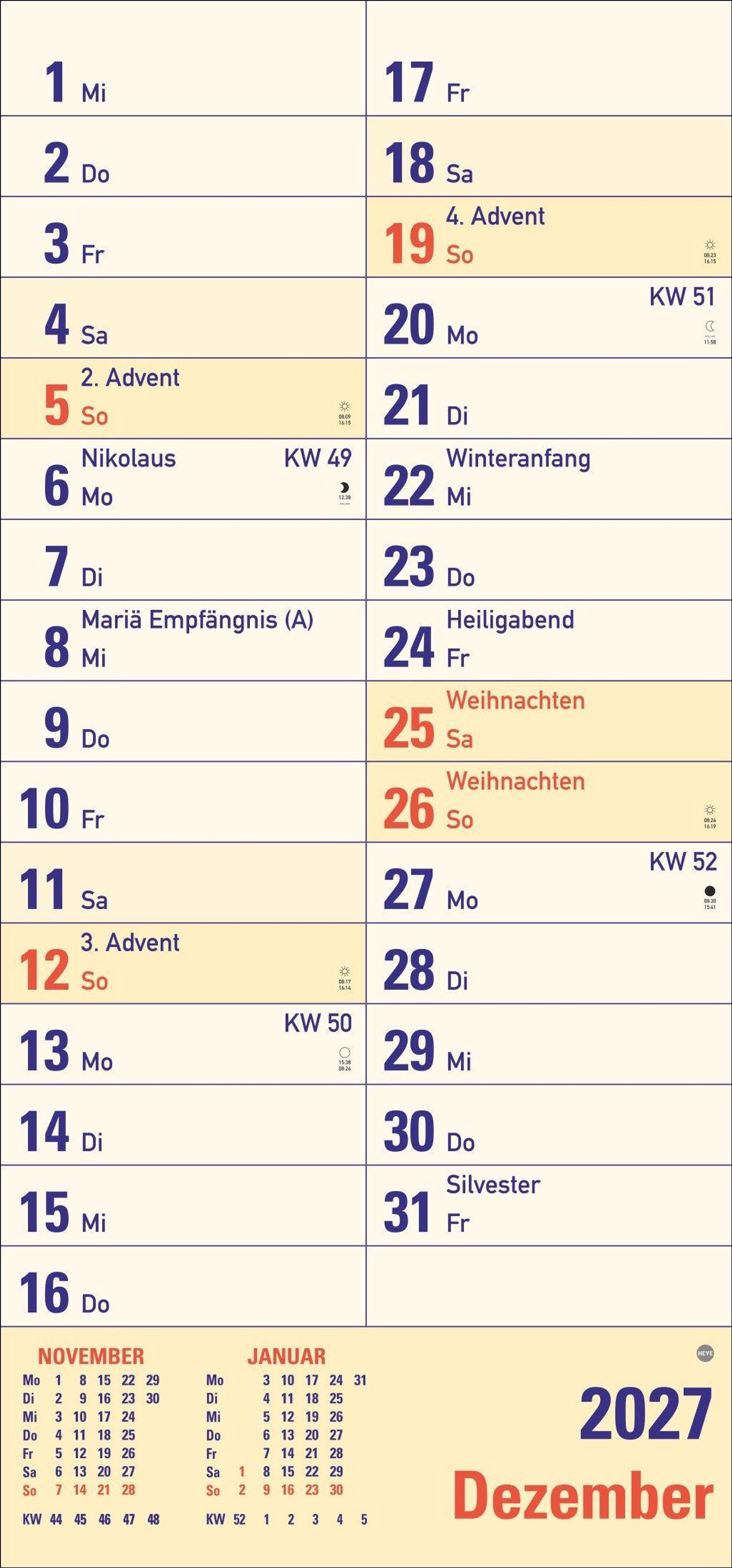 - Praktischer Wandplaner mit extra großer Schrift. Großer Wandkalender mit Schulferien und 3-Monats-Ausblick. Terminkalender 2027. 21 x 45 cm