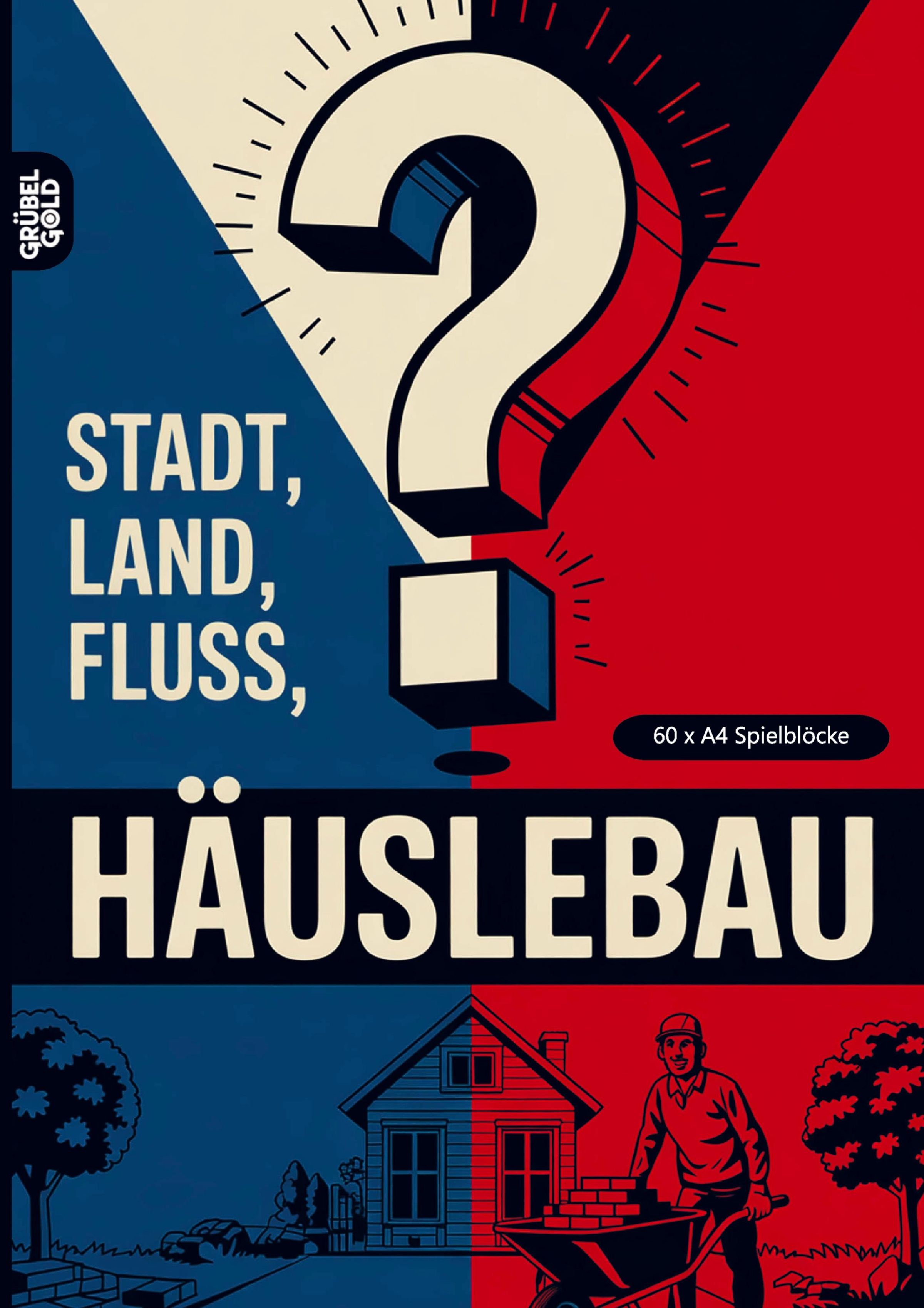 Diese spannende Stadt-Land-Fluss-Variante dreht sich rund um das Thema Hausbau und Eigenheim. Von der Grundstückssuche über Baustoffe bis zum Einzug - hier ist Kreativität gefragt! Ob Werkzeuge, Eigenleistungen oder Stressfaktoren beim Umzug: Die 15 Kategorien decken alle Bereiche ab, die angehende Bauherren kennen sollten. Perfekt für gesellige Spielrunde mit Familie und Freunden, die vom eigenen Heim träumen oder bereits mitten im Bauvorhaben stecken.