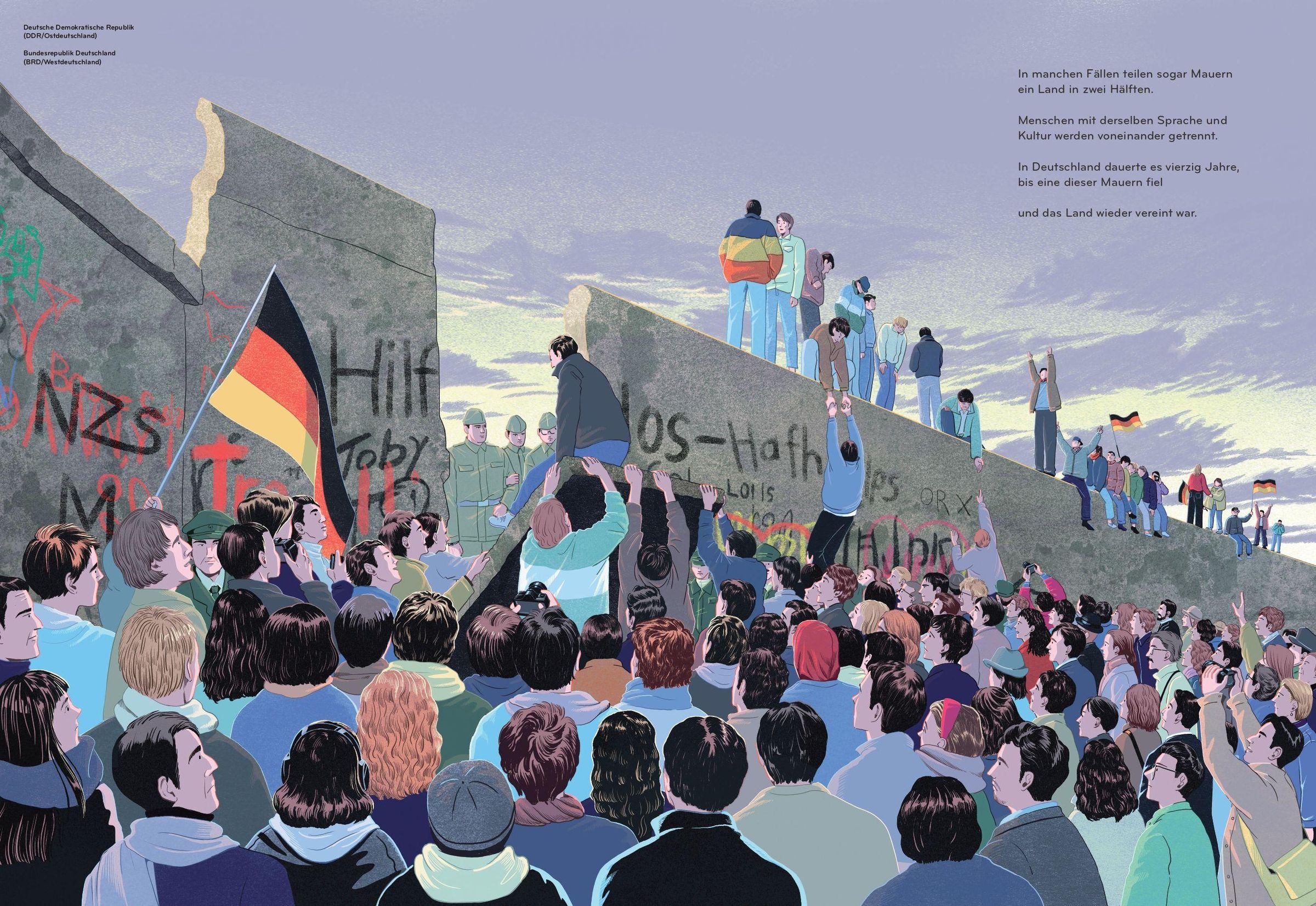 Vögel fliegen über Grenzen, Fische durchschwimmen Grenzen, Menschen jedoch nicht. Die Beziehung, die zwei Länder miteinander haben, zeigt sich anhand ihrer Grenzen: Manchmal sind sie kaum sicht- oder spürbar, manchmal benötigt man eine Bewilligung, um sie zu passieren, und manchmal darf sie niemand von der einen oder der anderen Seite übertreten und man wird sogar mit einer hohen Mauer, einem Stacheldrahtzaun oder Militärposten an der Überquerung gehindert. Grenzen werden von und für Menschen gezogen.