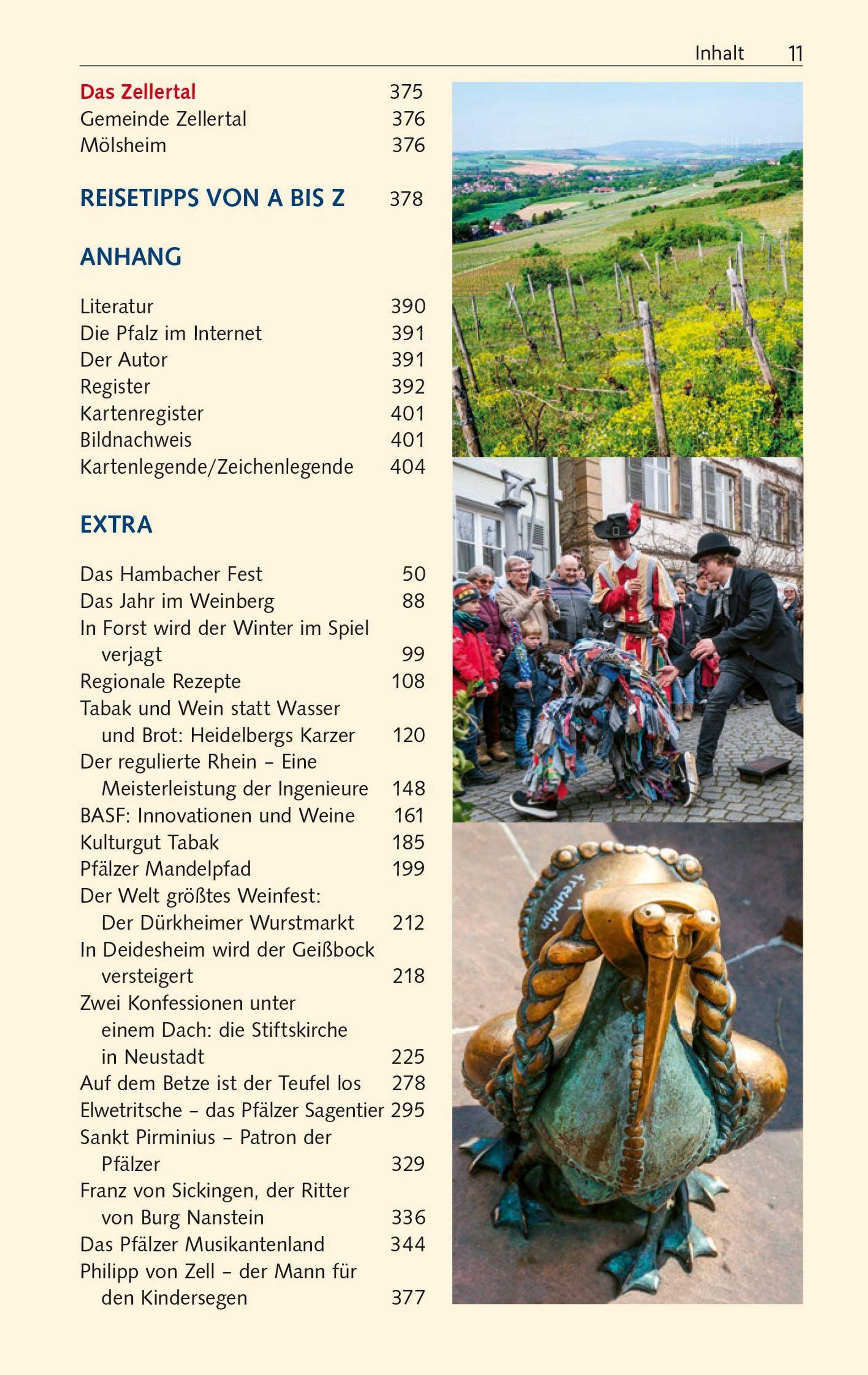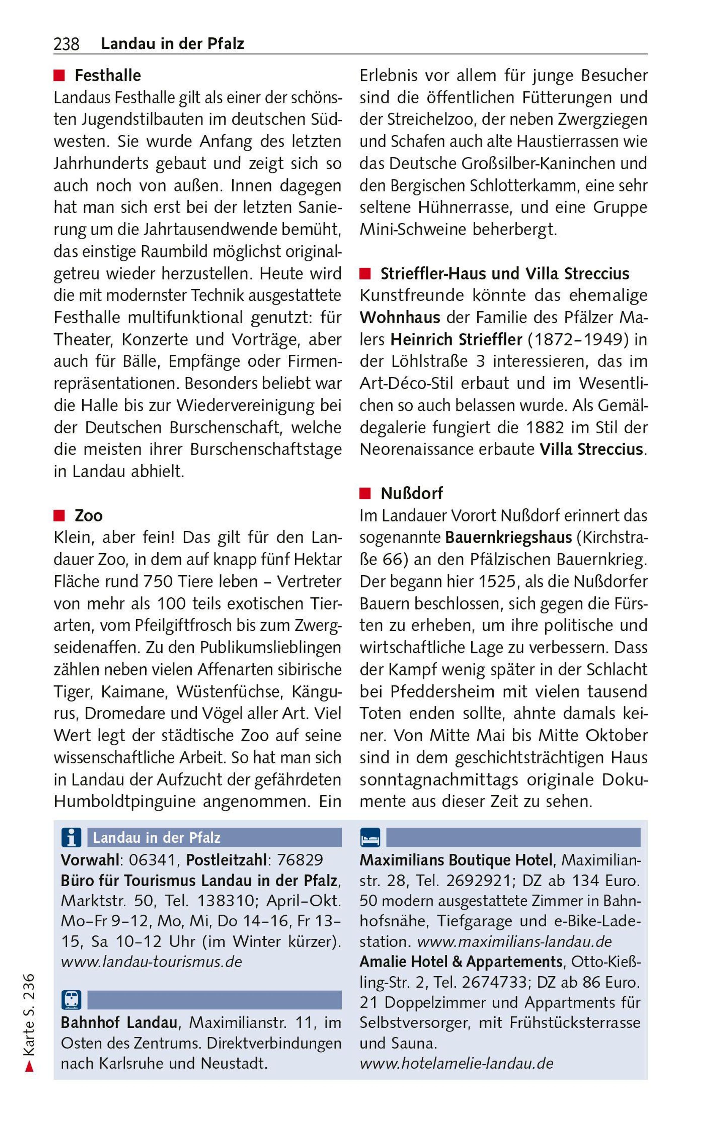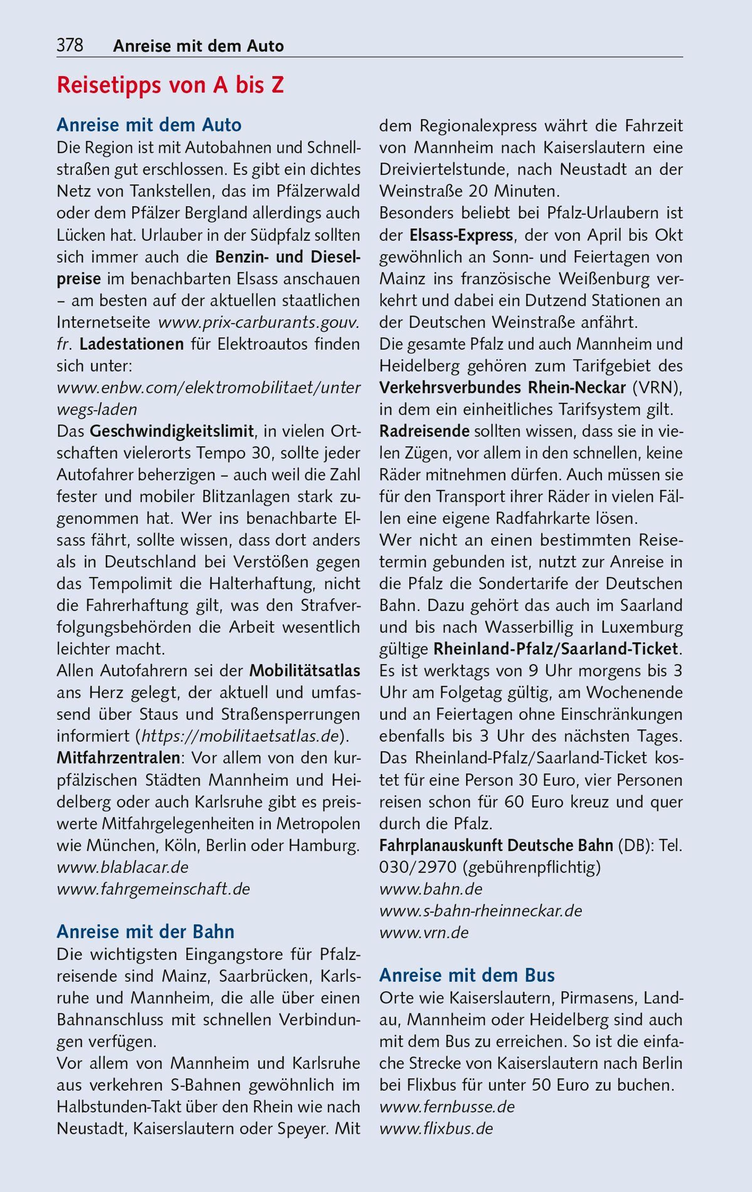 Im Trescher-Reiseführer PFALZ finden Kultur- wie Aktivurlauber neben der umfassenden Beschreibung aller Regionen und Sehenswürdigkeiten außerdem viele spannende Hintergrundinformationen zu Geschichte, Kultur und Brauchtum. Unterhaltsame Extra-Texte geben Einblicke in Pfälzer Besonderheiten; ein ausführliches Kapitel ist dem Weinbau gewidmet. Tourenvorschläge für Wanderer und Radfahrer, Freizeittipps für Familienurlaub sowie Empfehlungen zu Unterkünften und Gastronomie, Vinotheken und Weingütern, zu Museen, Festen und Veranstaltungen komplettieren das Buch zu einem unentbehrlichen Weggefährten, sei es für einen Wochenendtrip oder auch für eine längere Reise.