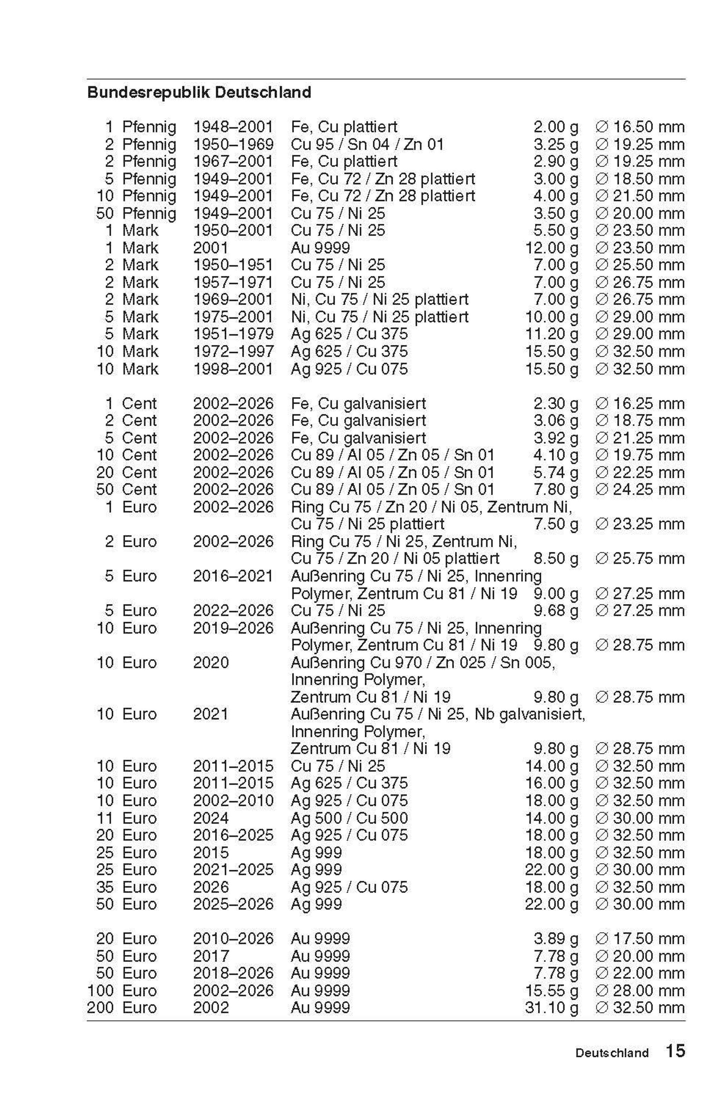 Der Klassiker schlechthin unter den Münzkatalogen - vollständig überarbeitet, dem neuesten Stand angepasst und mit aktuellen Bewertungen versehen. Seit vielen Jahren ist der "Kleine deutsche Münzkatalog" die übersichtlichste und beliebteste Informationsquelle für den Sammler deutscher Münzen. Geschätzt wird er vor allem wegen des kompletten und hand lichen Überblicks über Umlaufmünzen, Gedenkmünzen und Kursmünzensätze. Weit über 3000 Münzen sind in Originalgröße mit Vorder- und Rückseite abgebildet, alle erschienenen und angekündigten Kursmünzen sind erfasst. Zu den Münzen sind die tatsächlichen Prägezahlen sowie die aktuellen Marktpreise für bis zu vier Erhaltungsgrade (schön, sehr schön, vorzüglich, prägefrisch) und die Herstellungsarten Stempelglanz und Spiegelglanz / Polierte Platte angegeben.