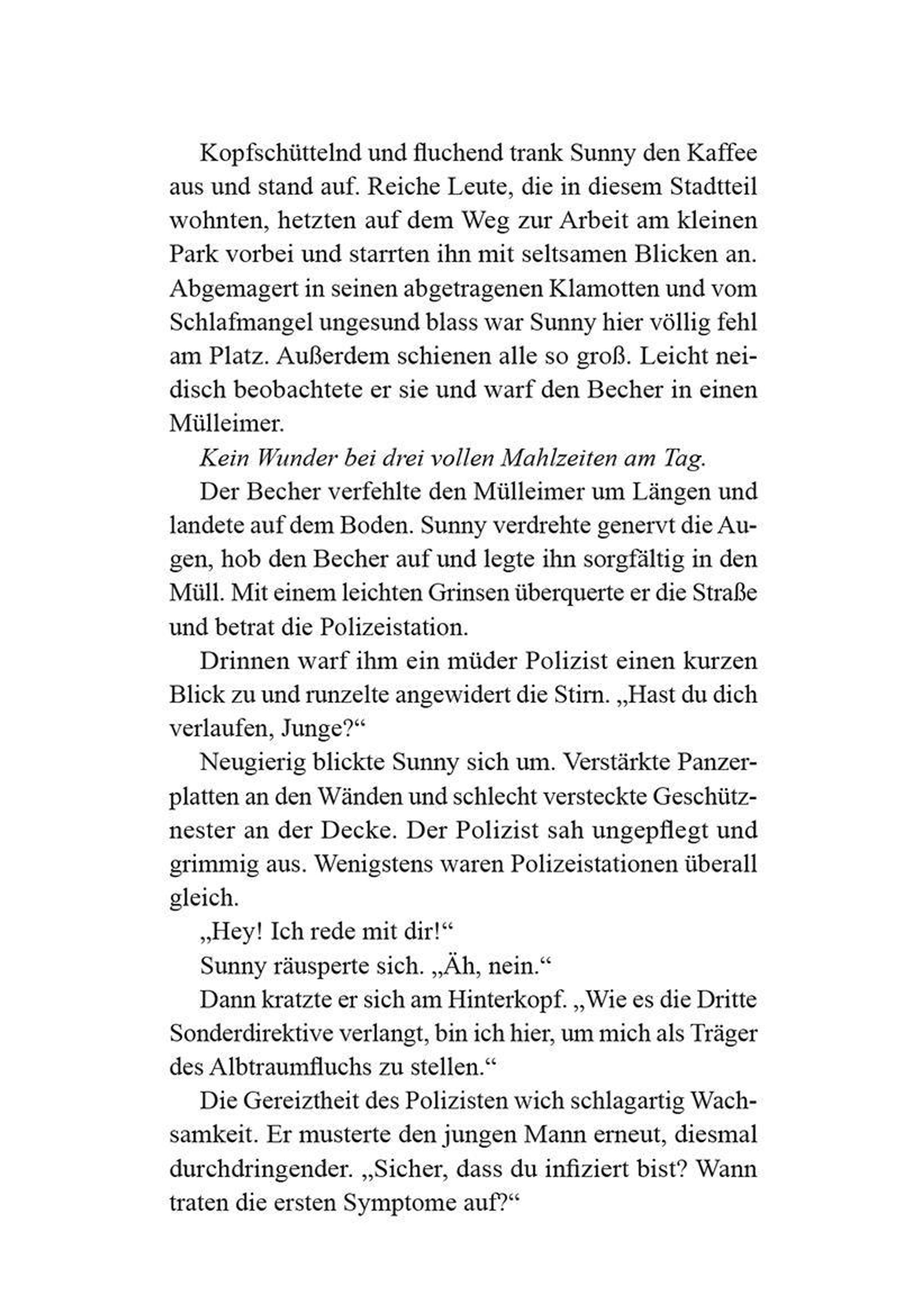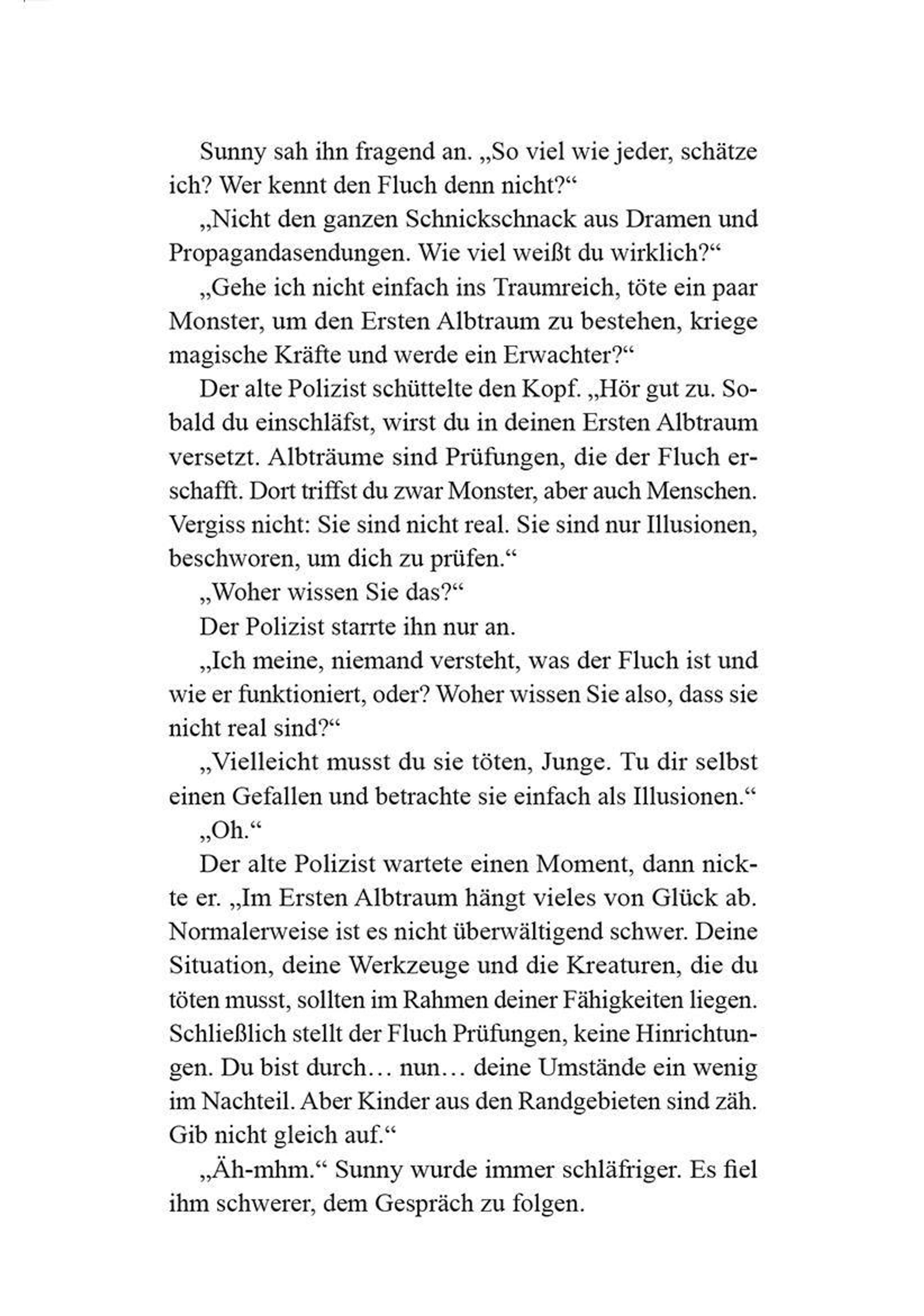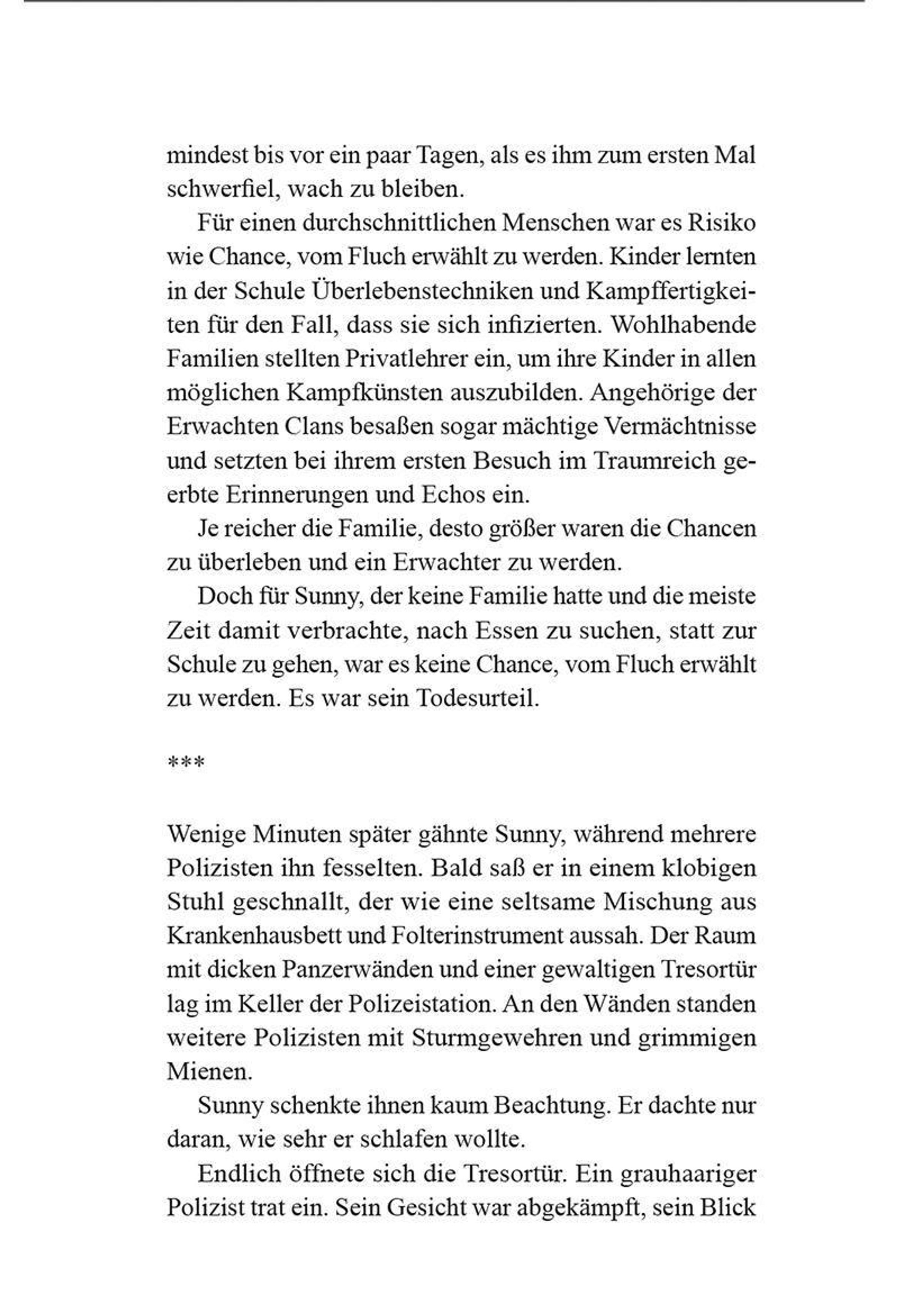 Jedes Jahr zerrt der Albtraumfluch zahllose Menschen in ihren Ersten Albtraum. Wer diese grausame Prüfung überlebt, erlangt ungeahnte Macht. Für jeden ist der Fluch Risiko wie Chance. Am Ende entscheidet Herkunft, wer als Erwachter hervorgeht. Doch für Sunny, eine Slumratte aus den Randgebieten, ist der Erste Albtraum ein Todesurteil. Vom Schicksal gezeichnet trotzt er den Kreaturen des Traumreichs.