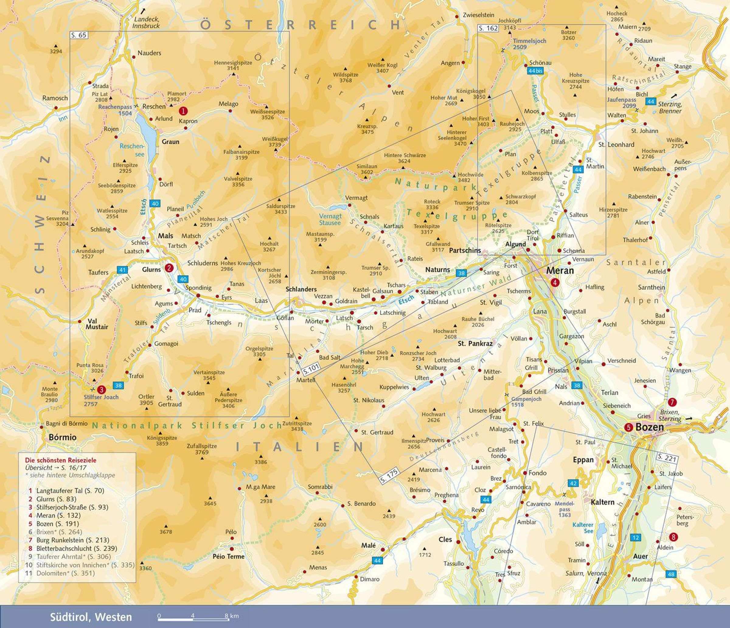 - Vinschgau, Eisacktal, Pustertal, Dolomiten, Gardasee, Meran, Bozen, Brixen, Trient