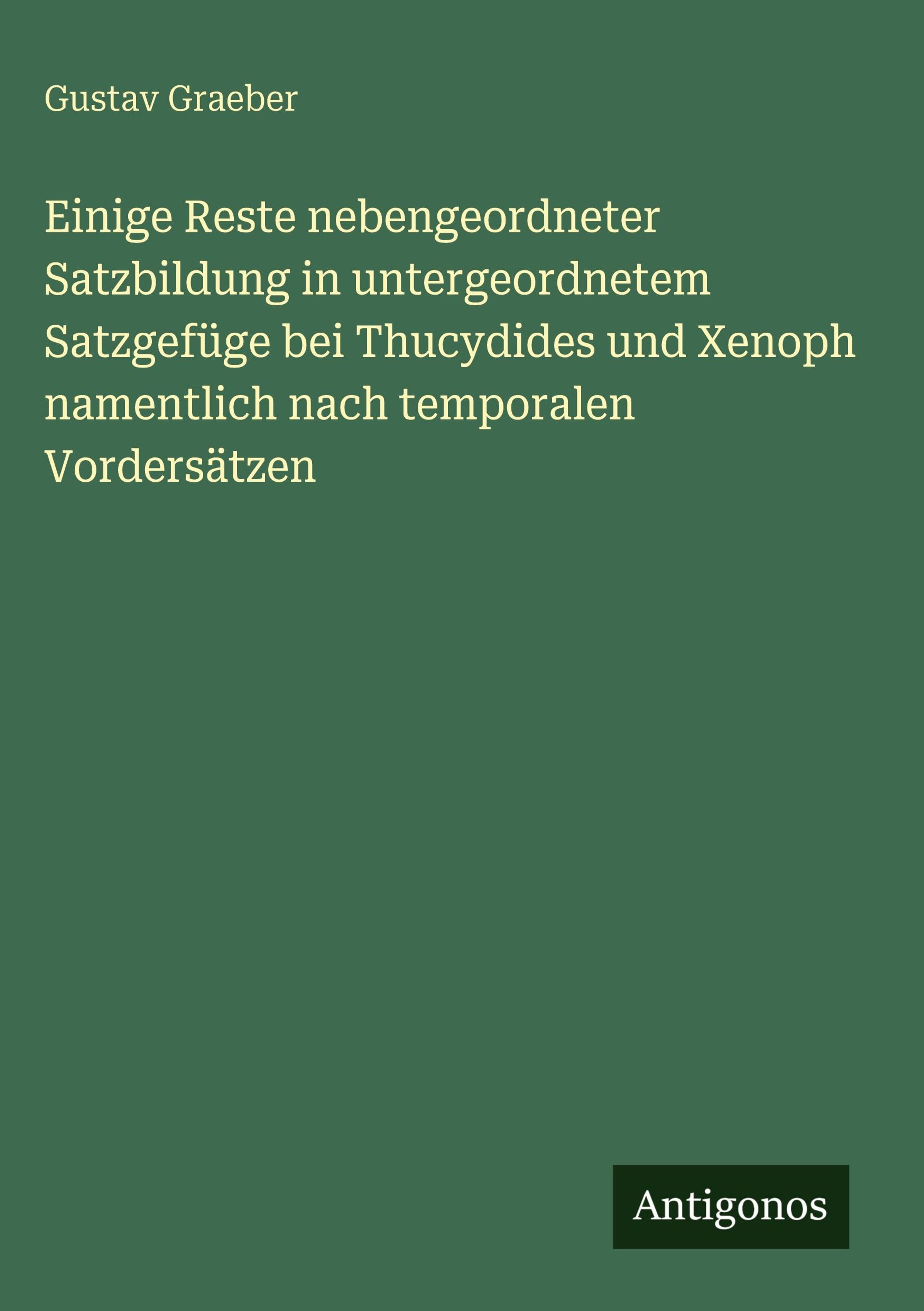 Gustav Graeber: Einige Reste nebengeordneter Satzbildung in untergeordnetem Satzgefüge bei Thucydides und Xenoph..., Gebunden