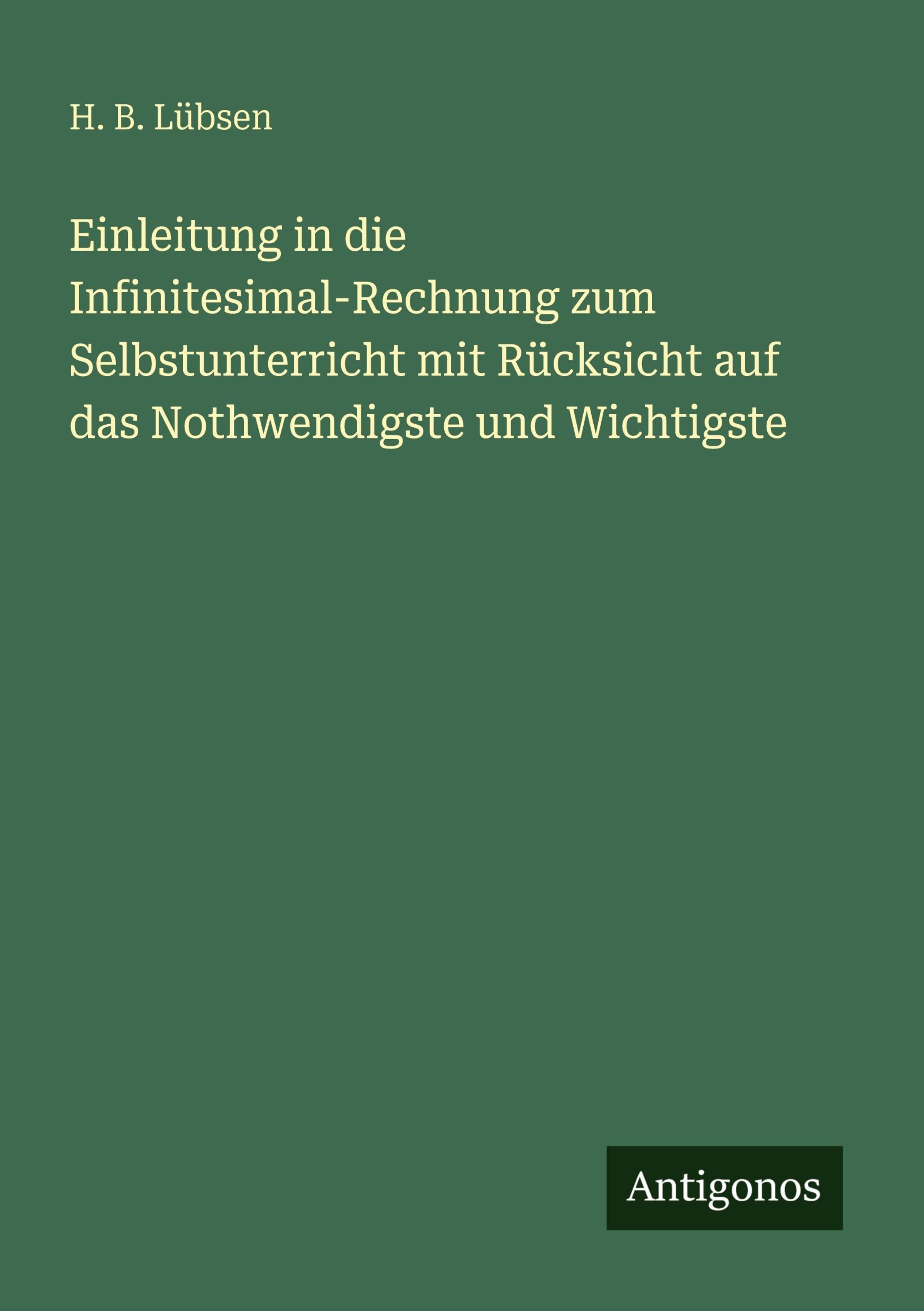 H. B. Lübsen: Einleitung in die Infinitesimal-Rechnung zum Selbstunterricht mit Rücksicht auf das Nothwendigste..., Kartoniert / Broschiert