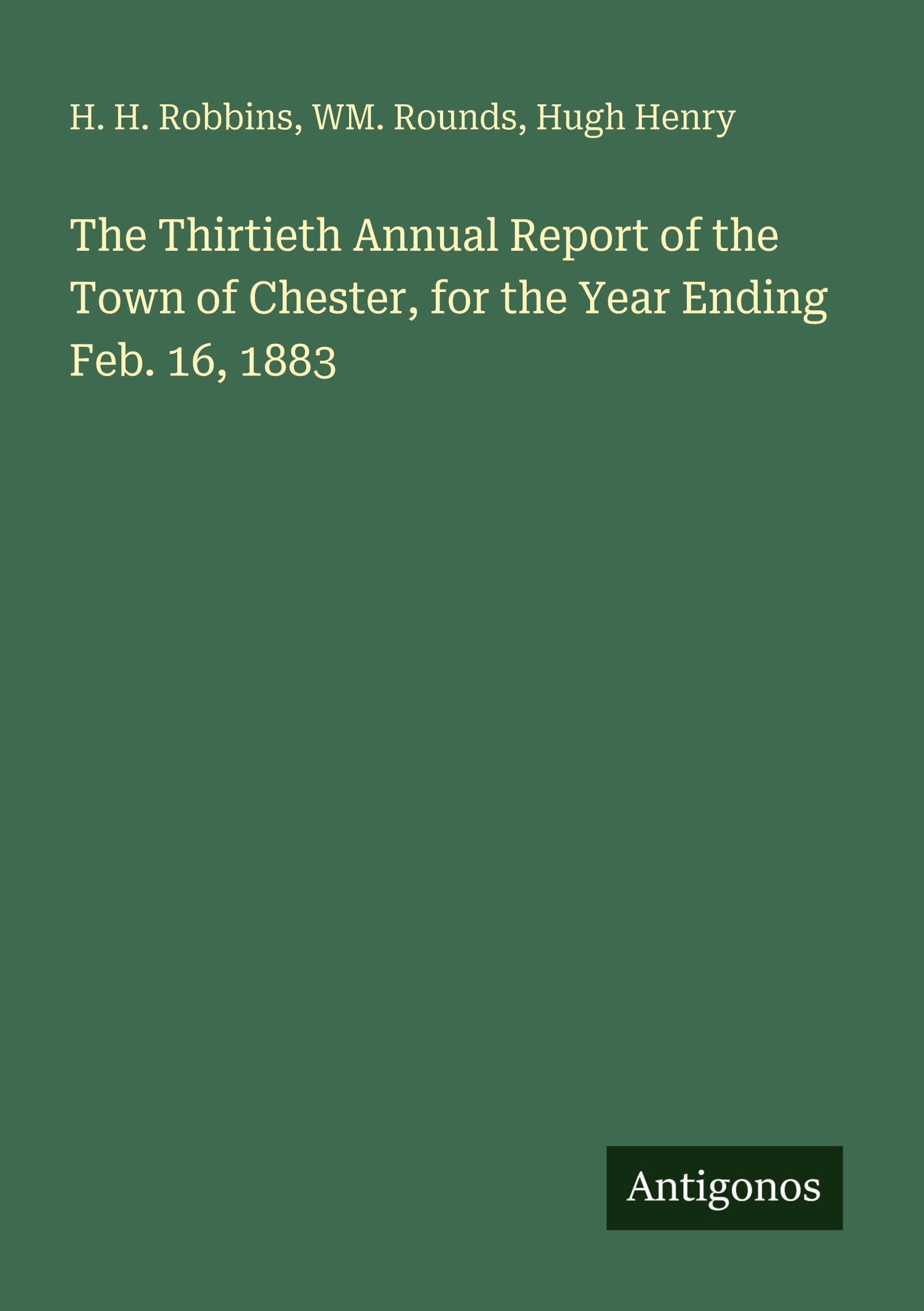 H. H. Robbins: The Thirtieth Annual Report of the Town of Chester, for the Year Ending Feb. 16, 1883, Kartoniert / Broschiert