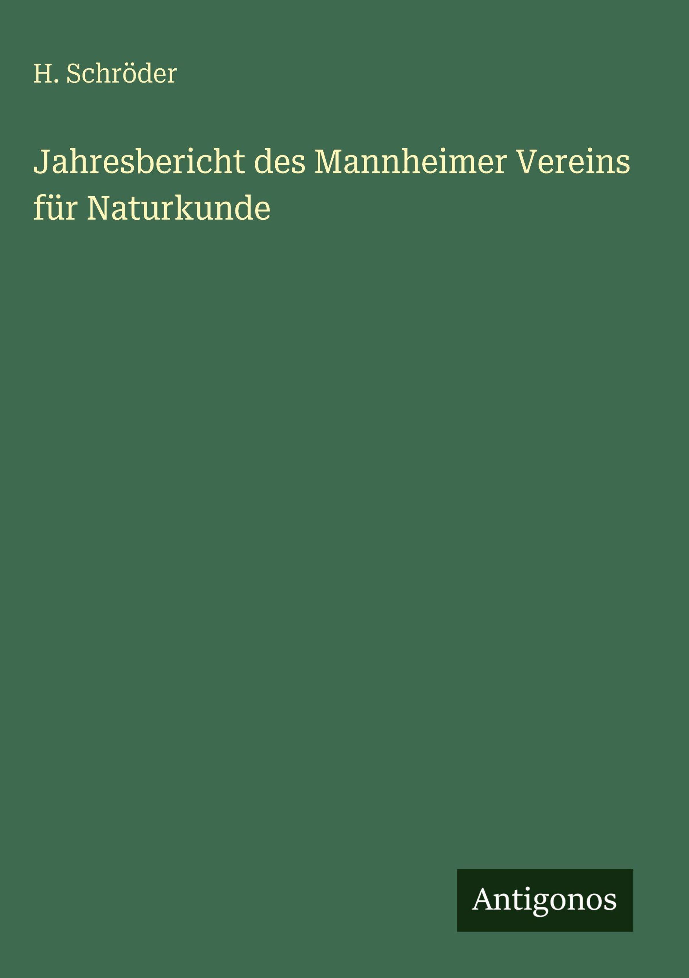 H. Schröder: Jahresbericht des Mannheimer Vereins für Naturkunde, Gebunden